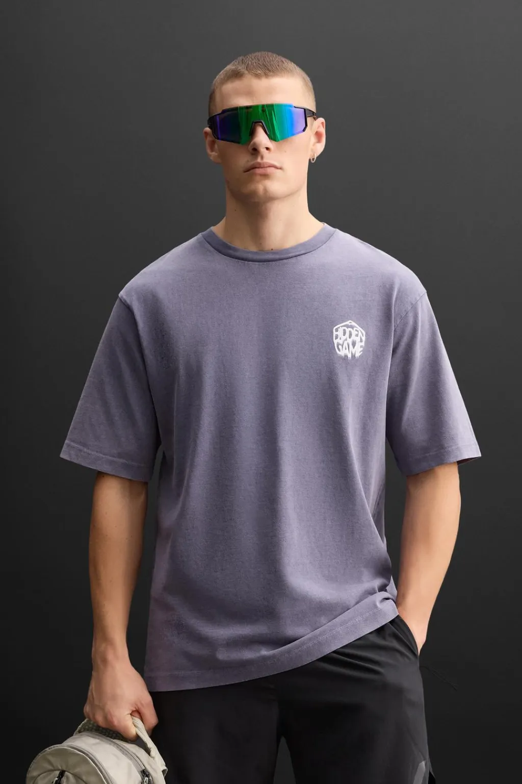 Camiseta relaxed fit. Cuello redondo y manga corta. Gráficos estampados combinados a contraste en delantero y espalda. Efecto lavado.