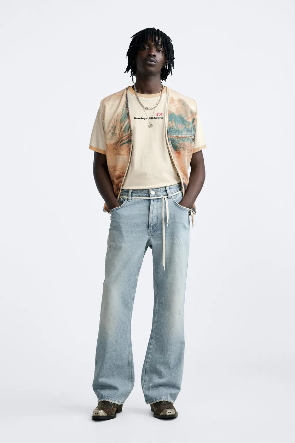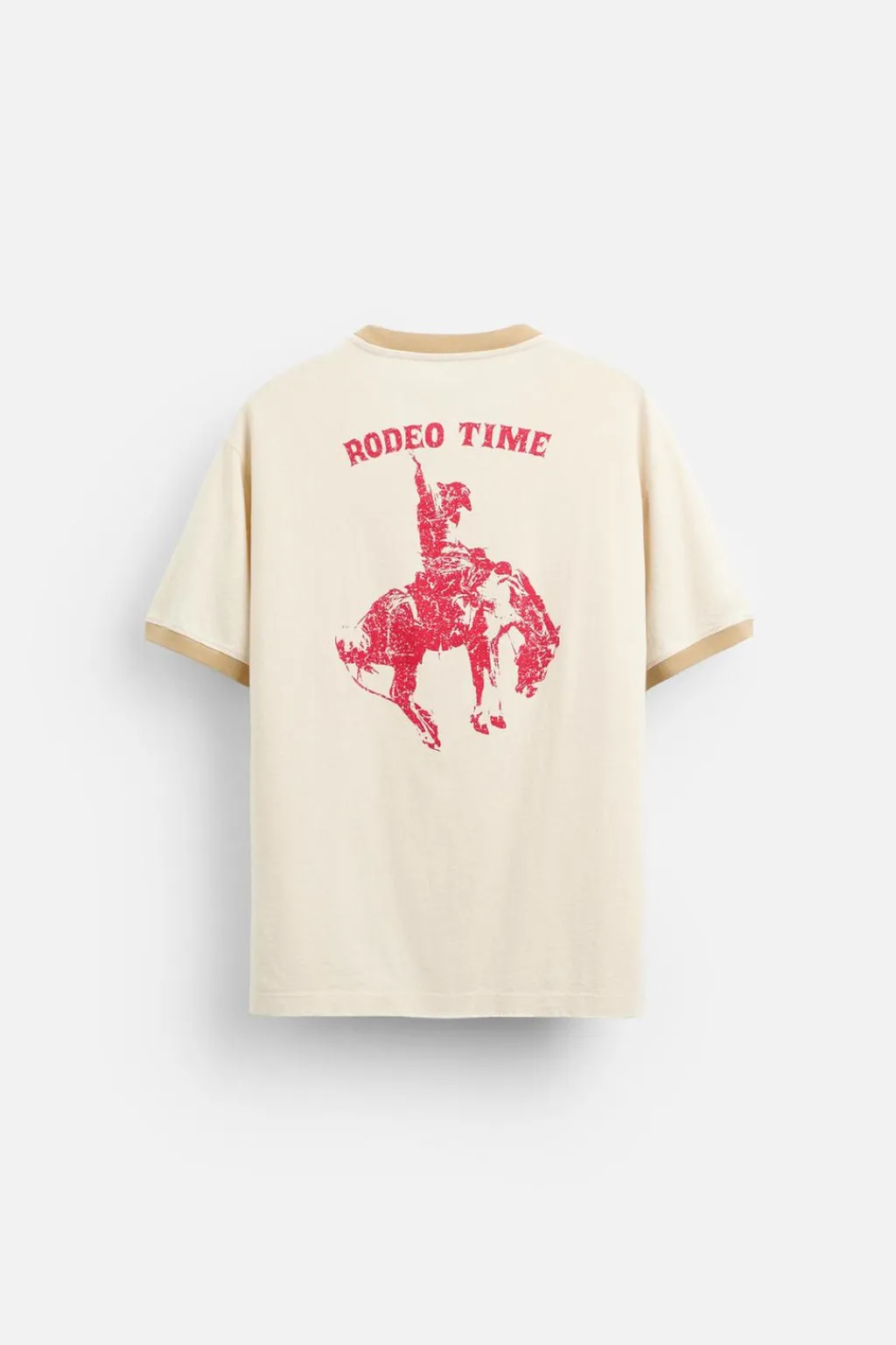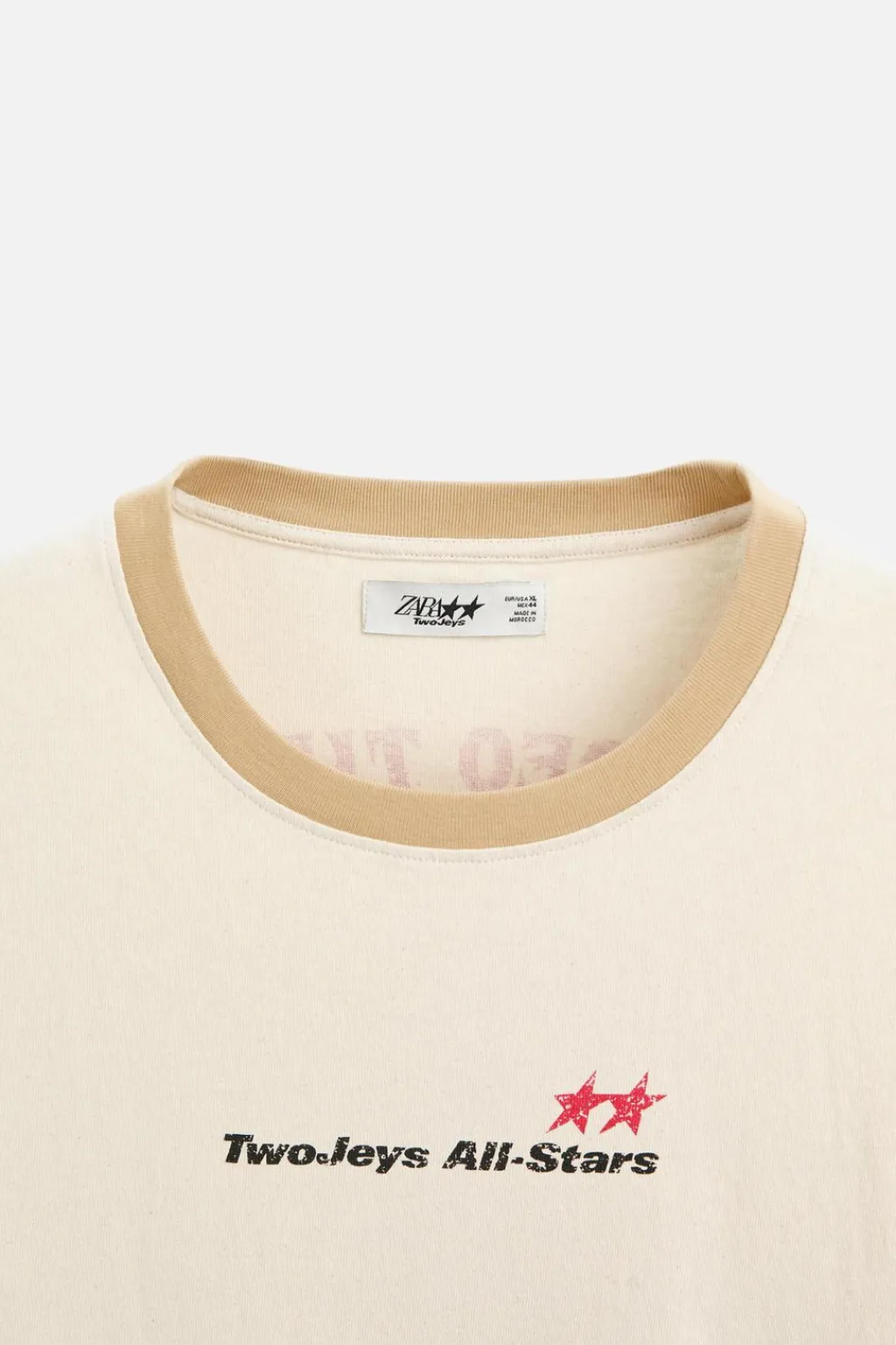 Camiseta regular fit. Cuello redondo y manga corta acabados en rib combinado a contraste. Estampaciones combinadas a contraste en delantero y espalda.