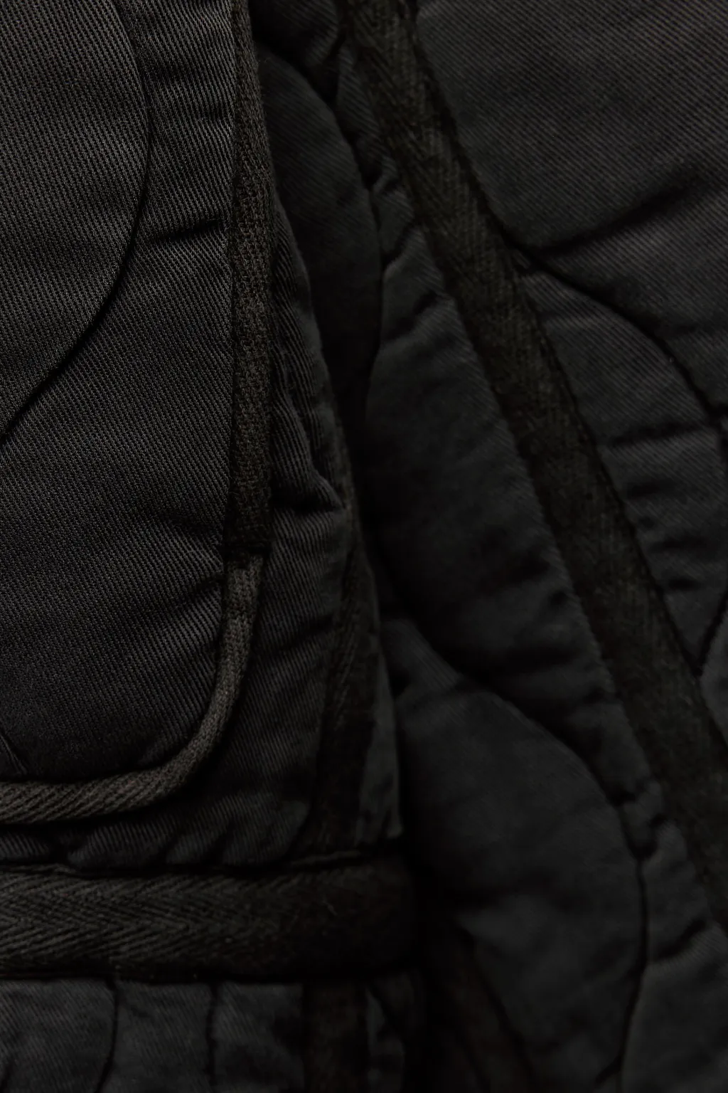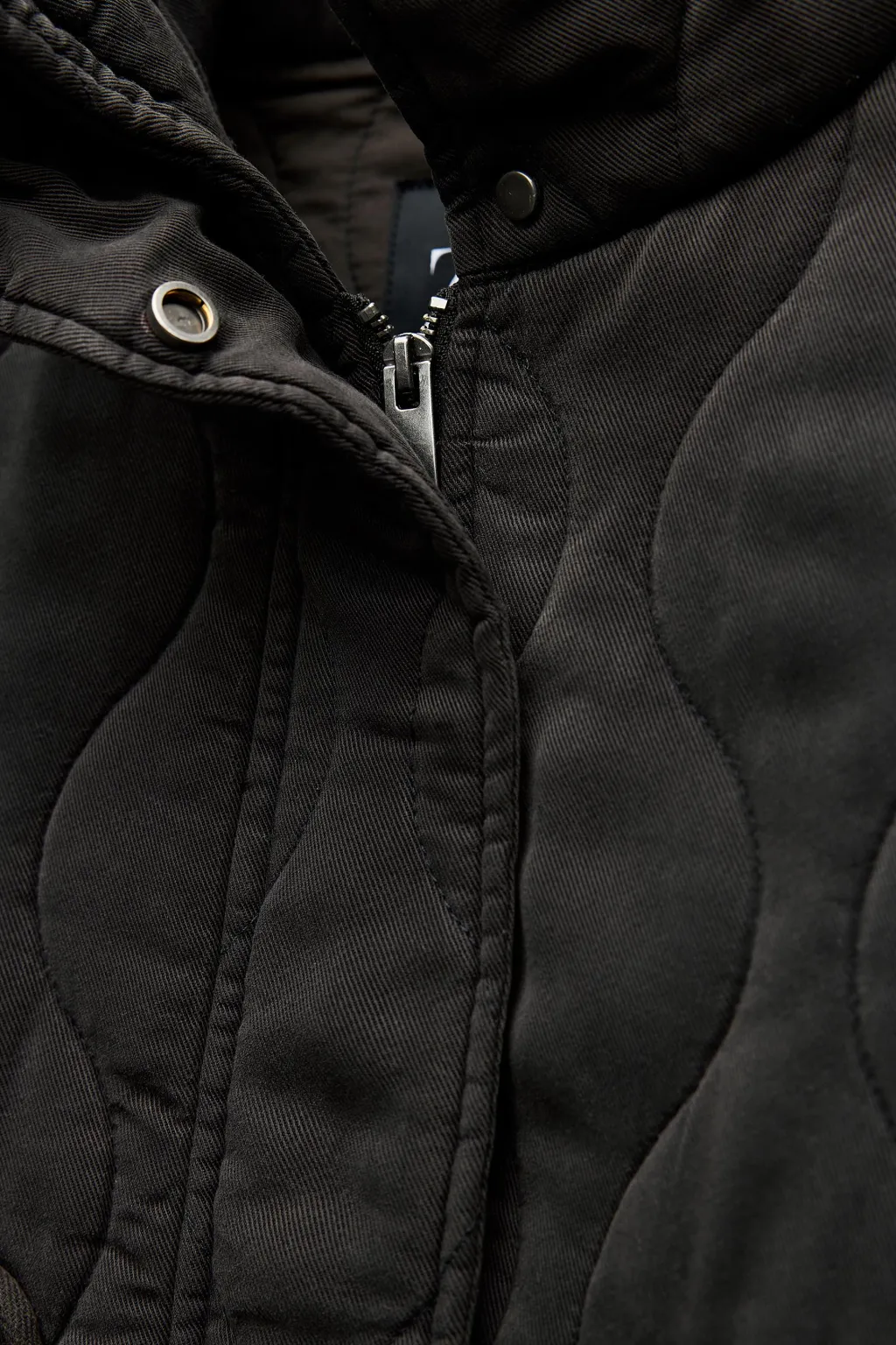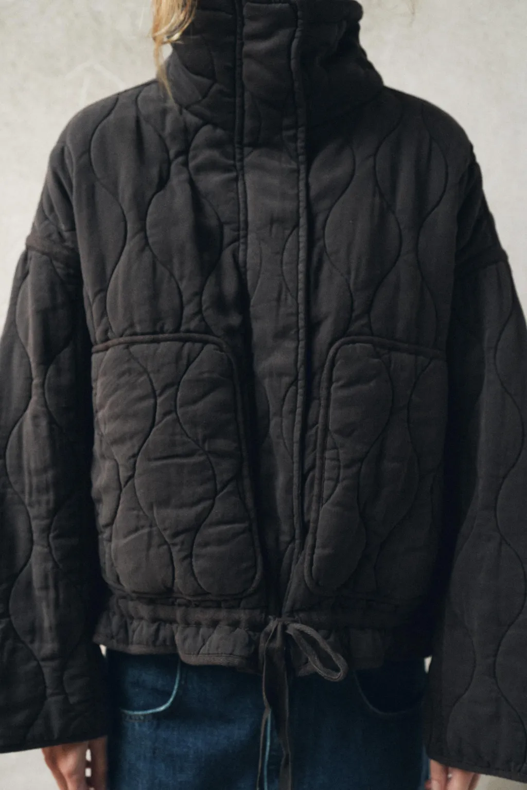 Cazadora acolchada de cuello subido y manga larga. Bolsillos de plastrón en delantero. Bajo ajustable con cordones. Cierre frontal con cremallera metálica y botones a presión.