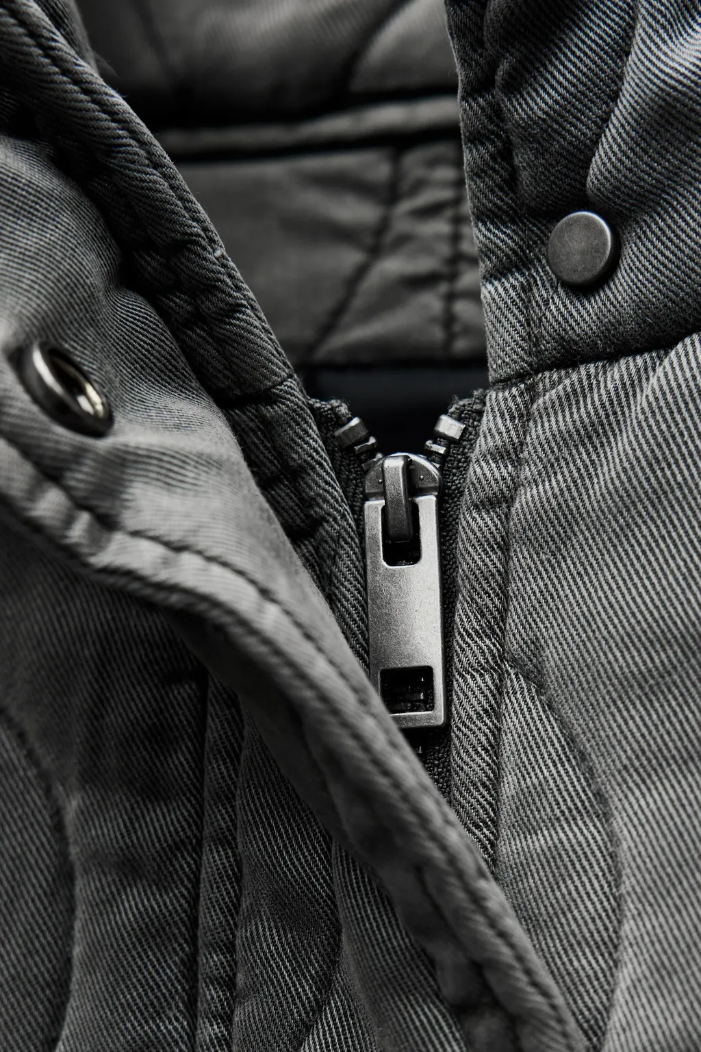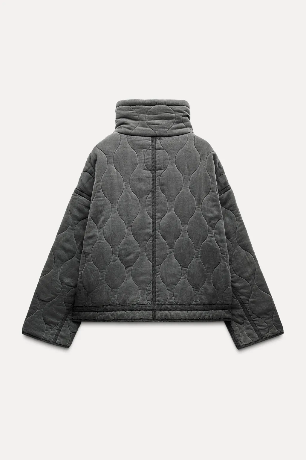 Chaqueta acolchada confeccionada en hilatura de lyocell. Cuello perkins y manga larga. Bolsillos de plastrón en delantero. Bajo ajustable con cordones. Cierre frontal con cremallera metálica.