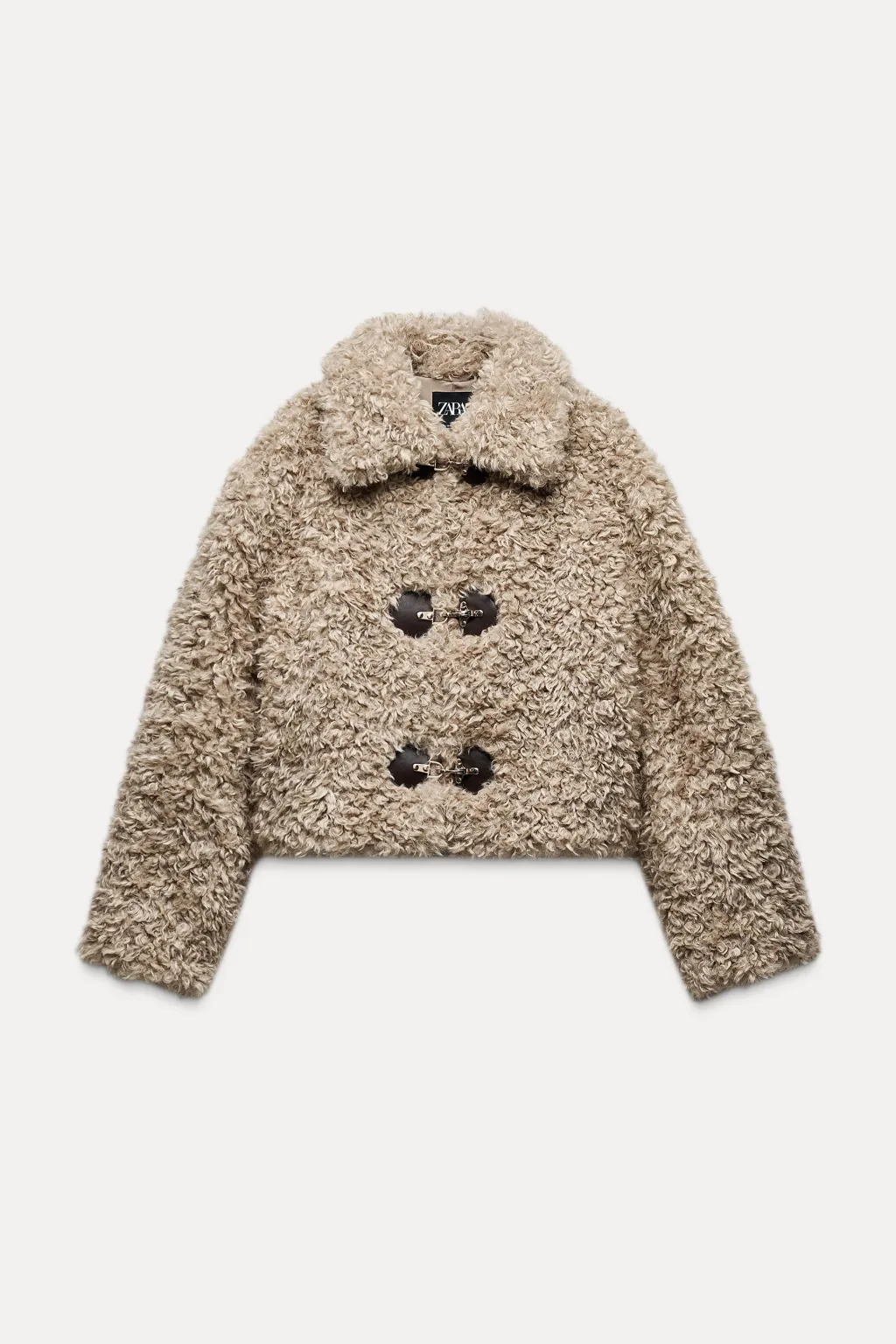 Chaqueta de cuello solapa y manga larga. Bolsillos laterales ocultos en costura. Cierre frontal con alamares.