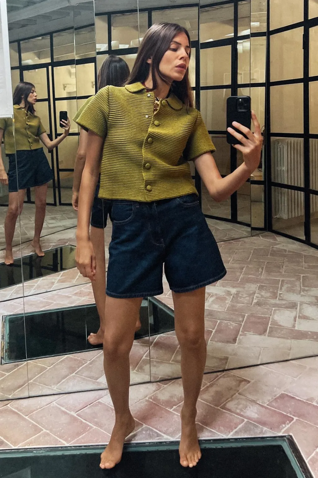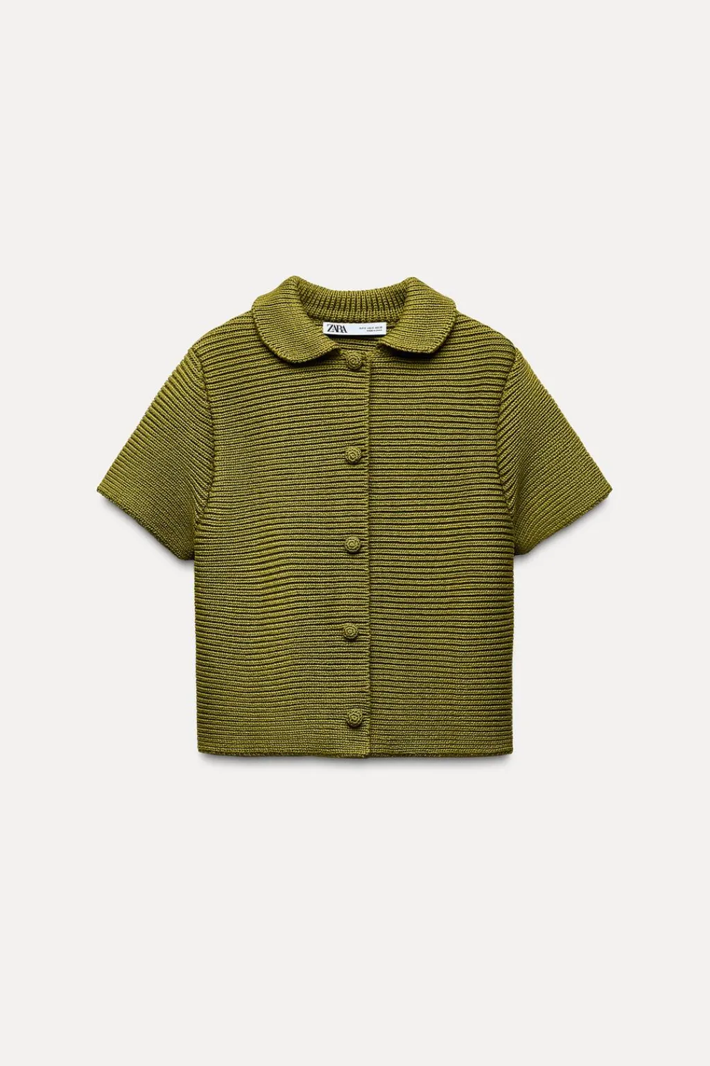 Chaqueta de cuello bobo y manga corta. Cierre frontal con botones forrados a tono.