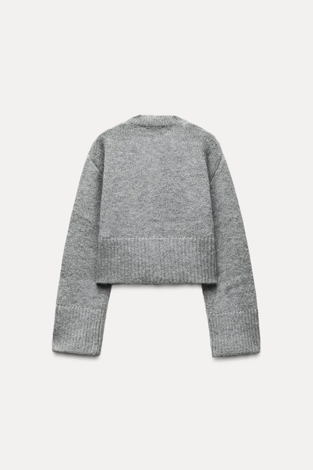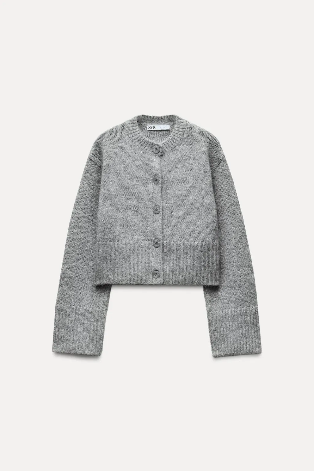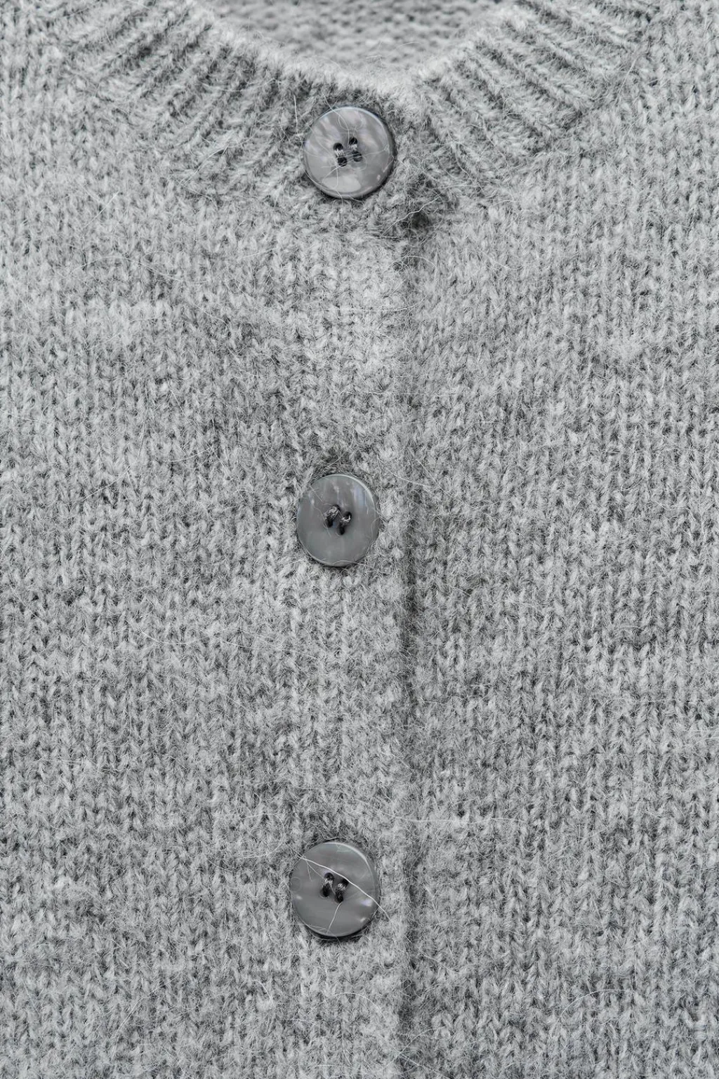 Chaqueta de cuello redondo y manga larga. Acabados en rib. Cierre frontal con botones.
