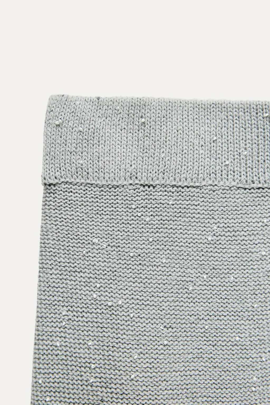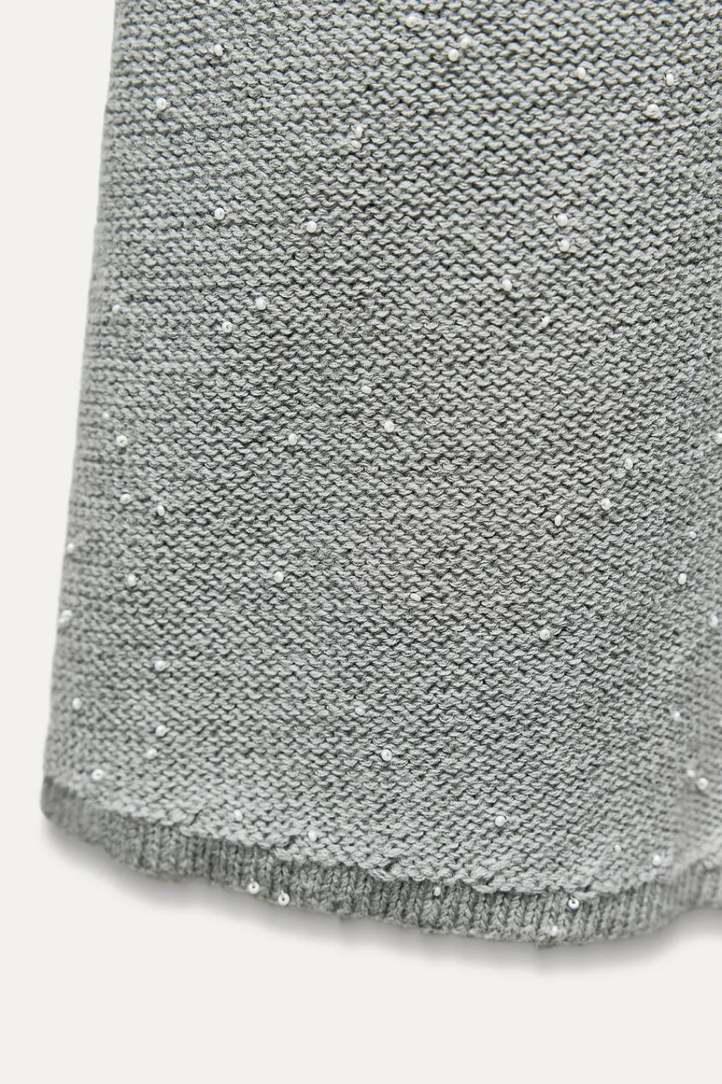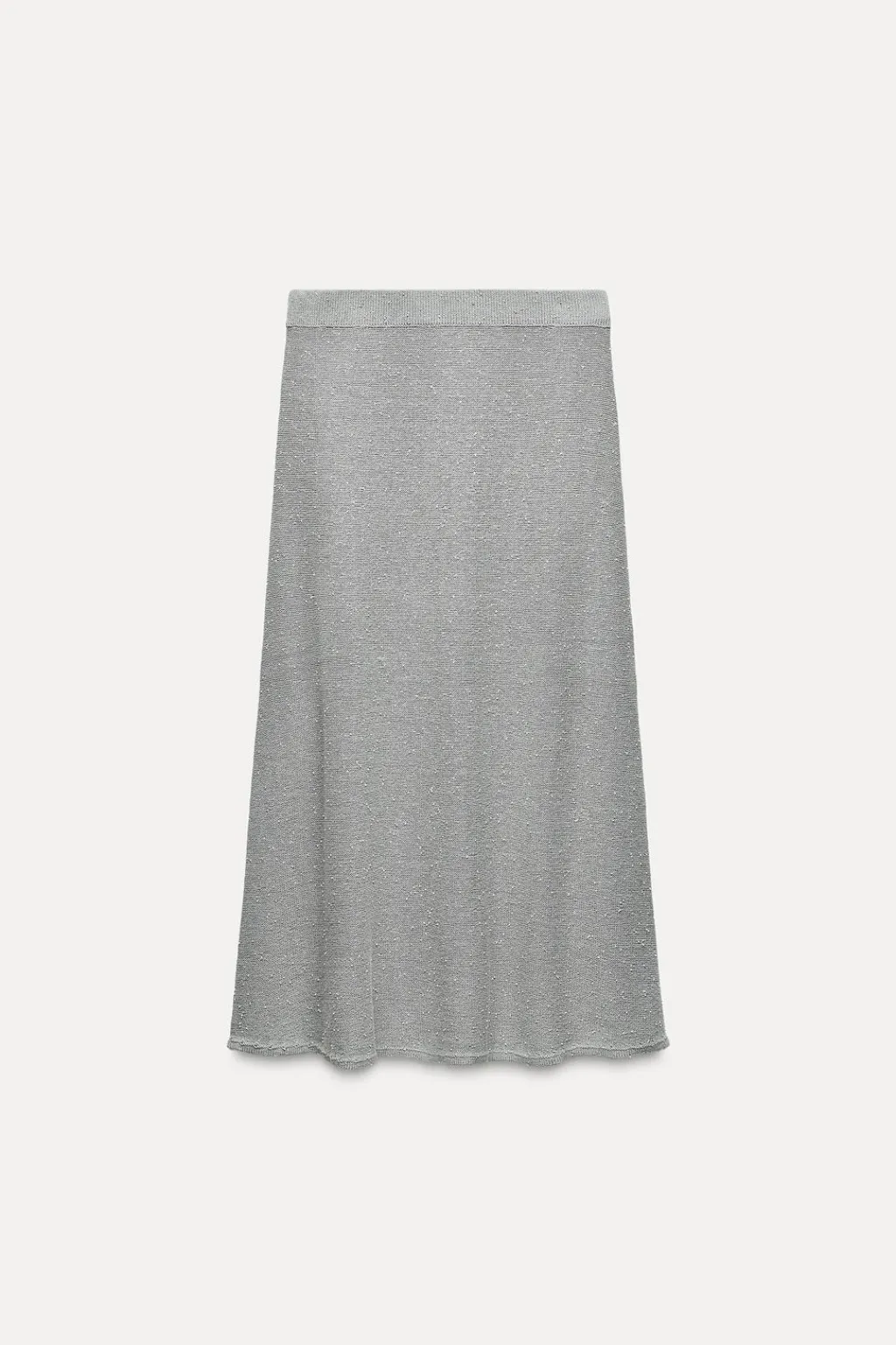 Falda de tiro alto con cintura elástica. Detalle aplicación de abalorios mini. Bajo en evasé.