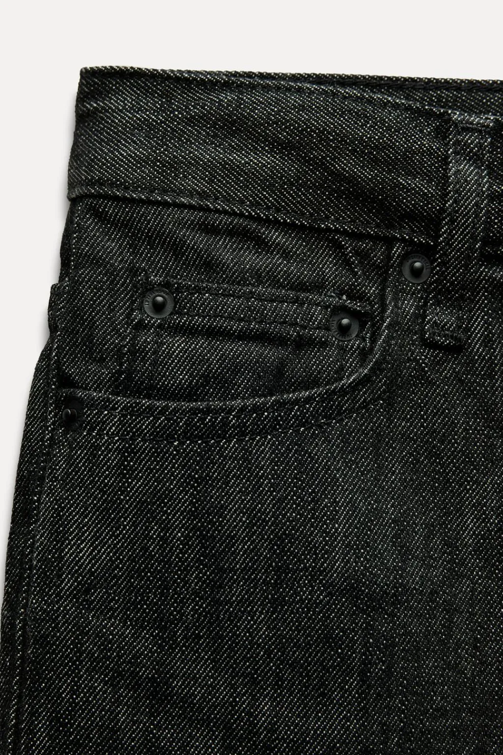 Jeans de tiro medio y cintura con trabillas. Cinco bolsillos. Pierna recta. Cierre frontal con cremallera y botón.