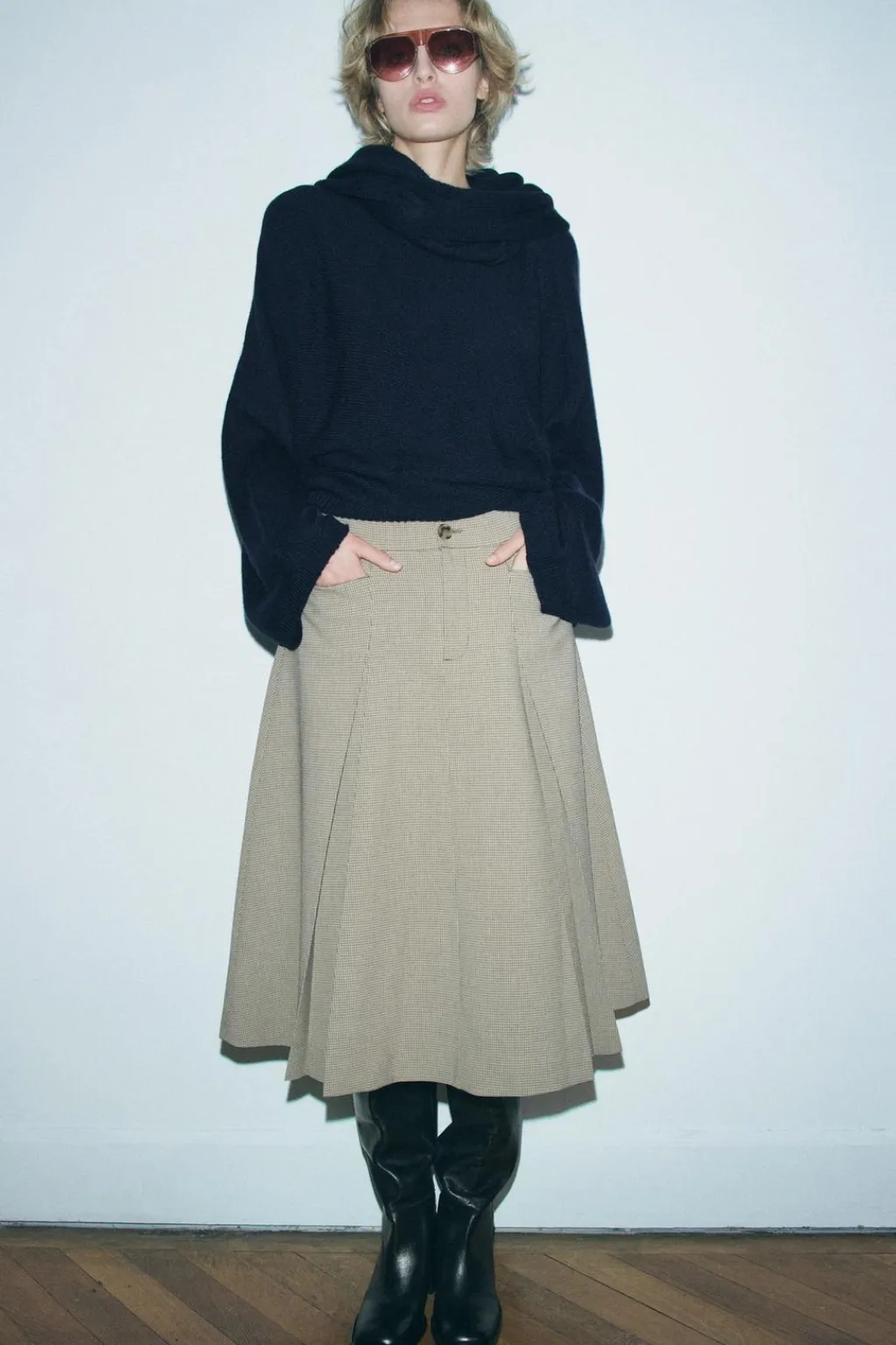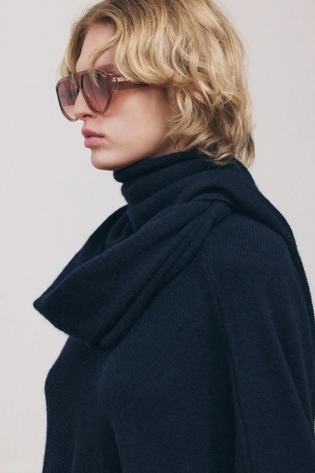 Jersey confeccionado con lana. Detalle de cuello con bufanda y manga larga ancha. Acabados en rib.