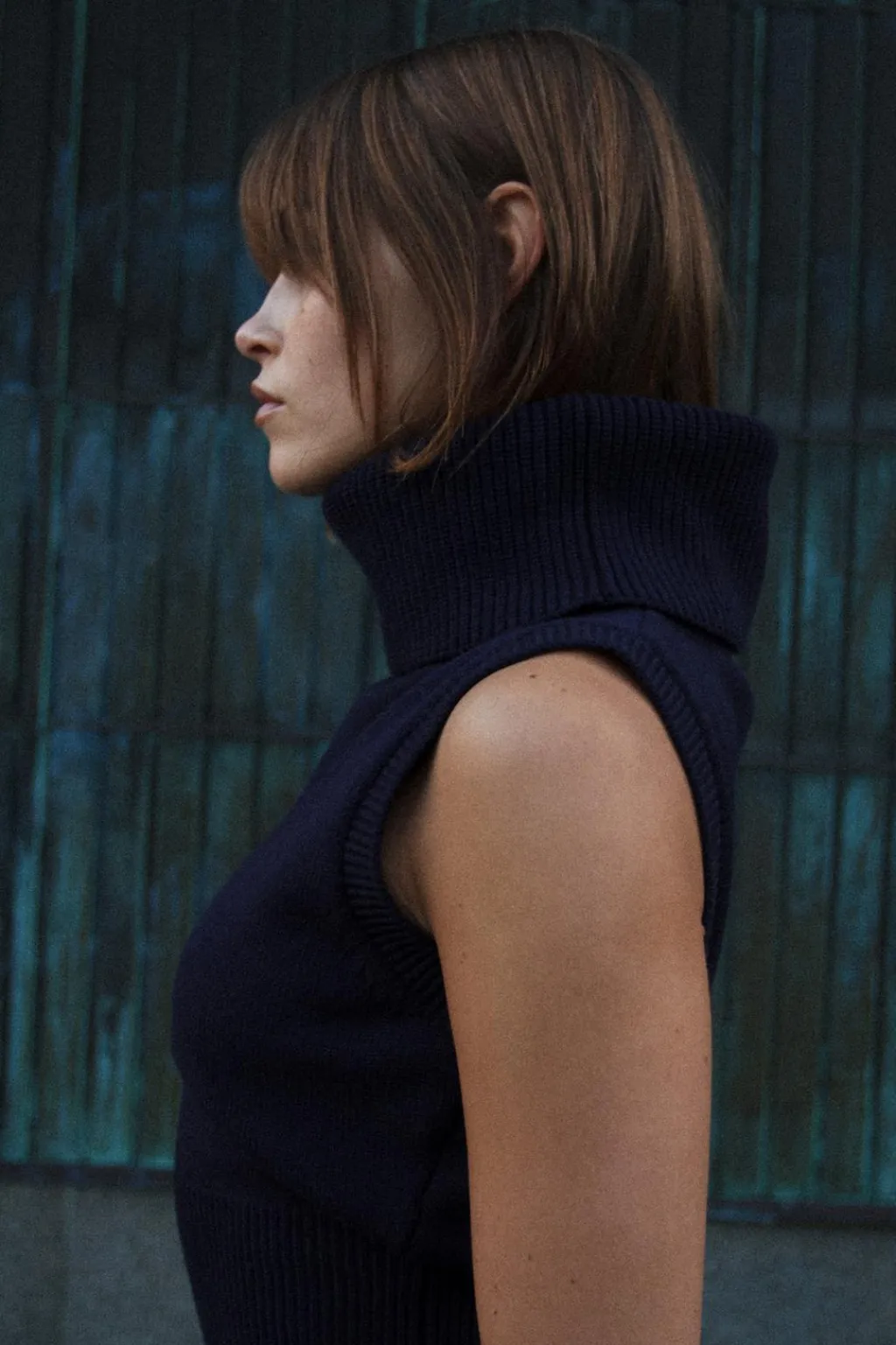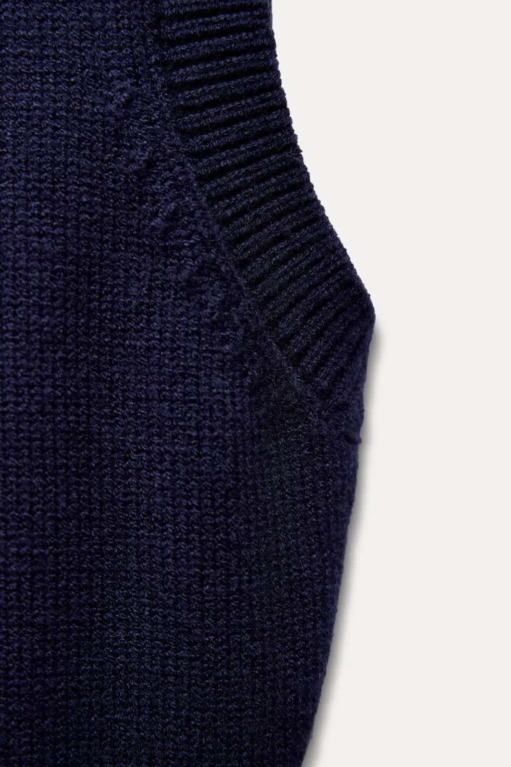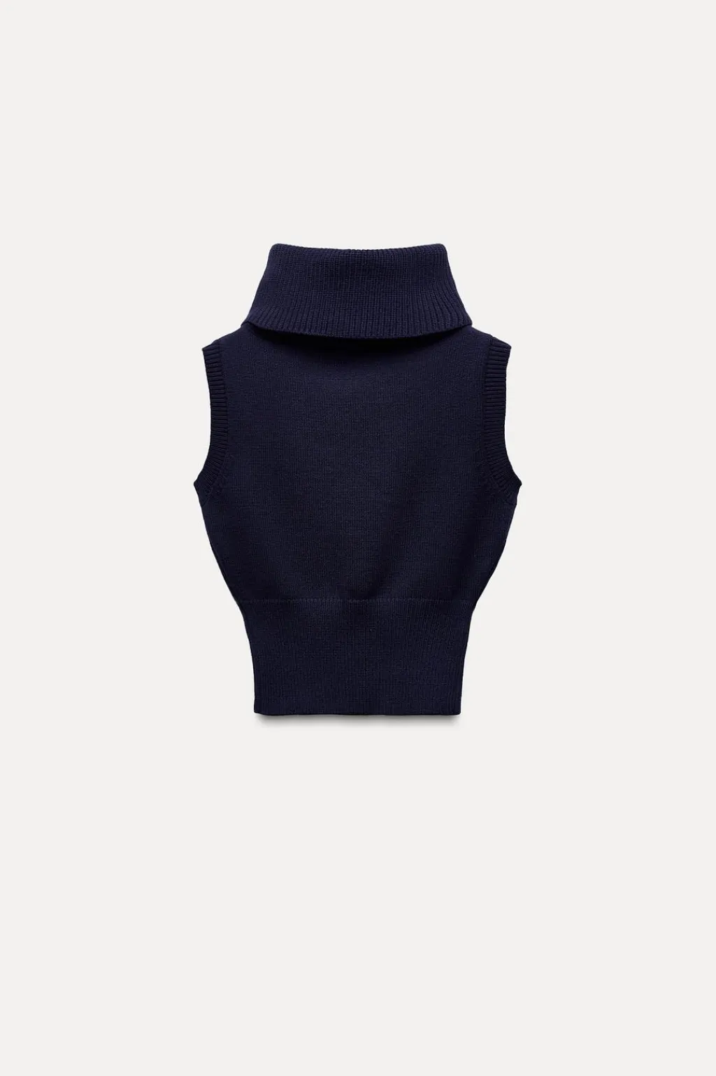 Jersey chaleco de punto liso con cuello subido y manga sisa. Acabados en rib.