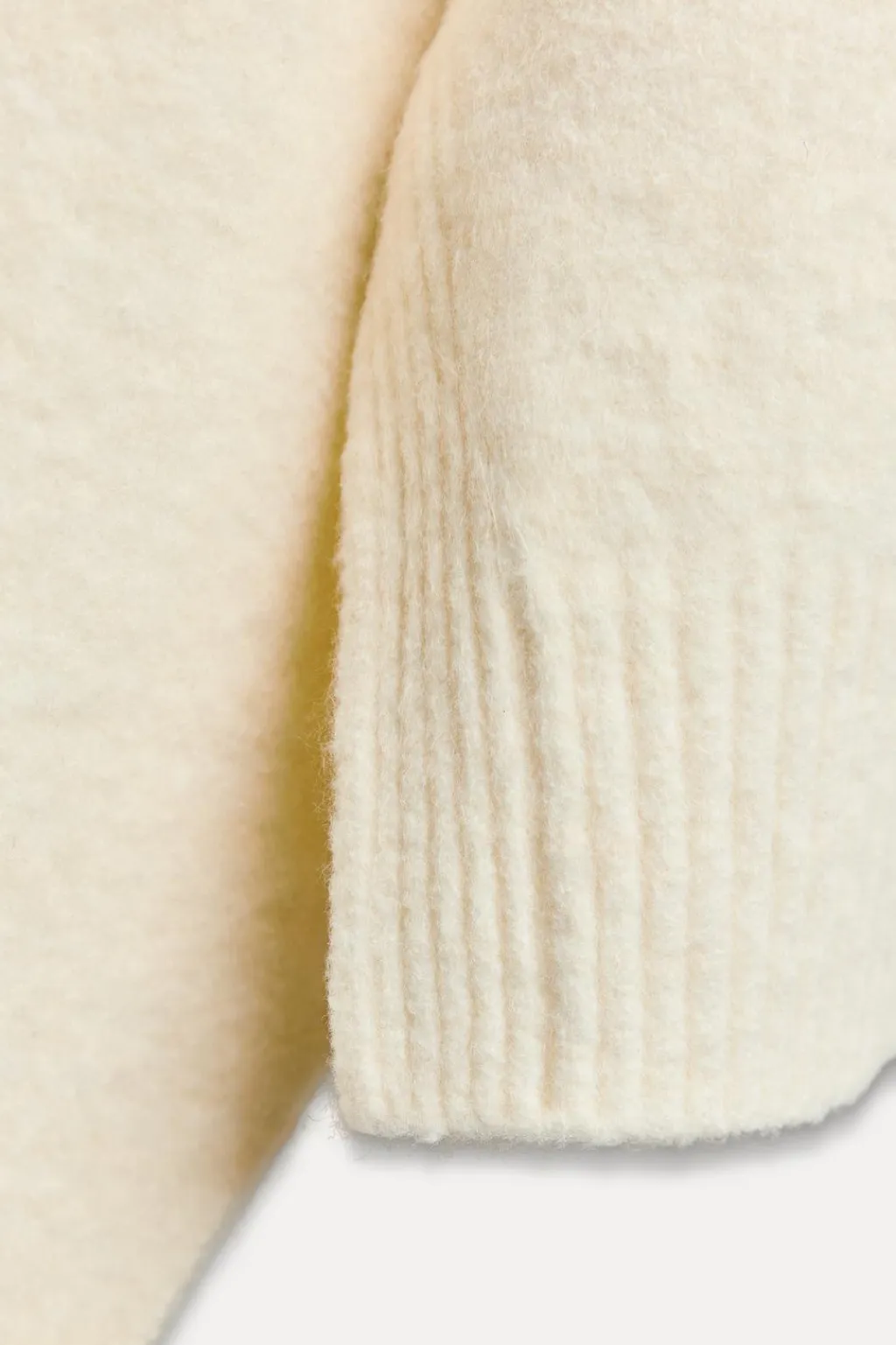 Jersey de cuello redondo y manga larga. Acabados en rib. Bajo con aberturas laterales.