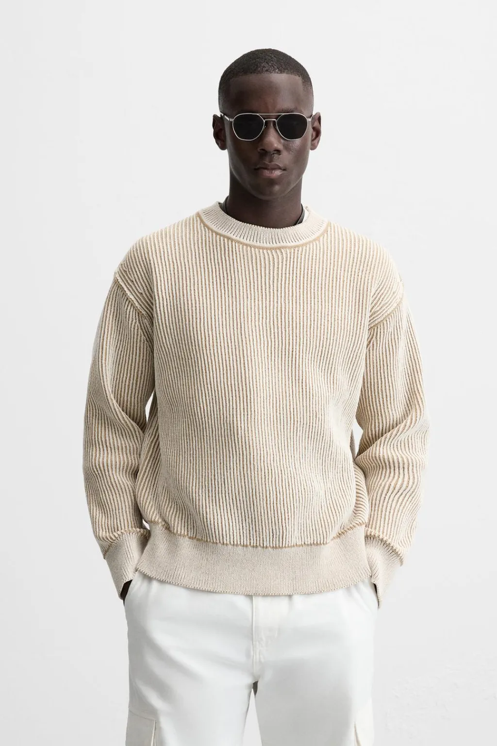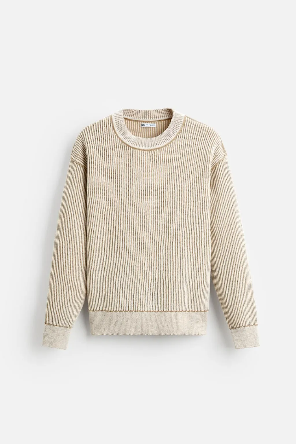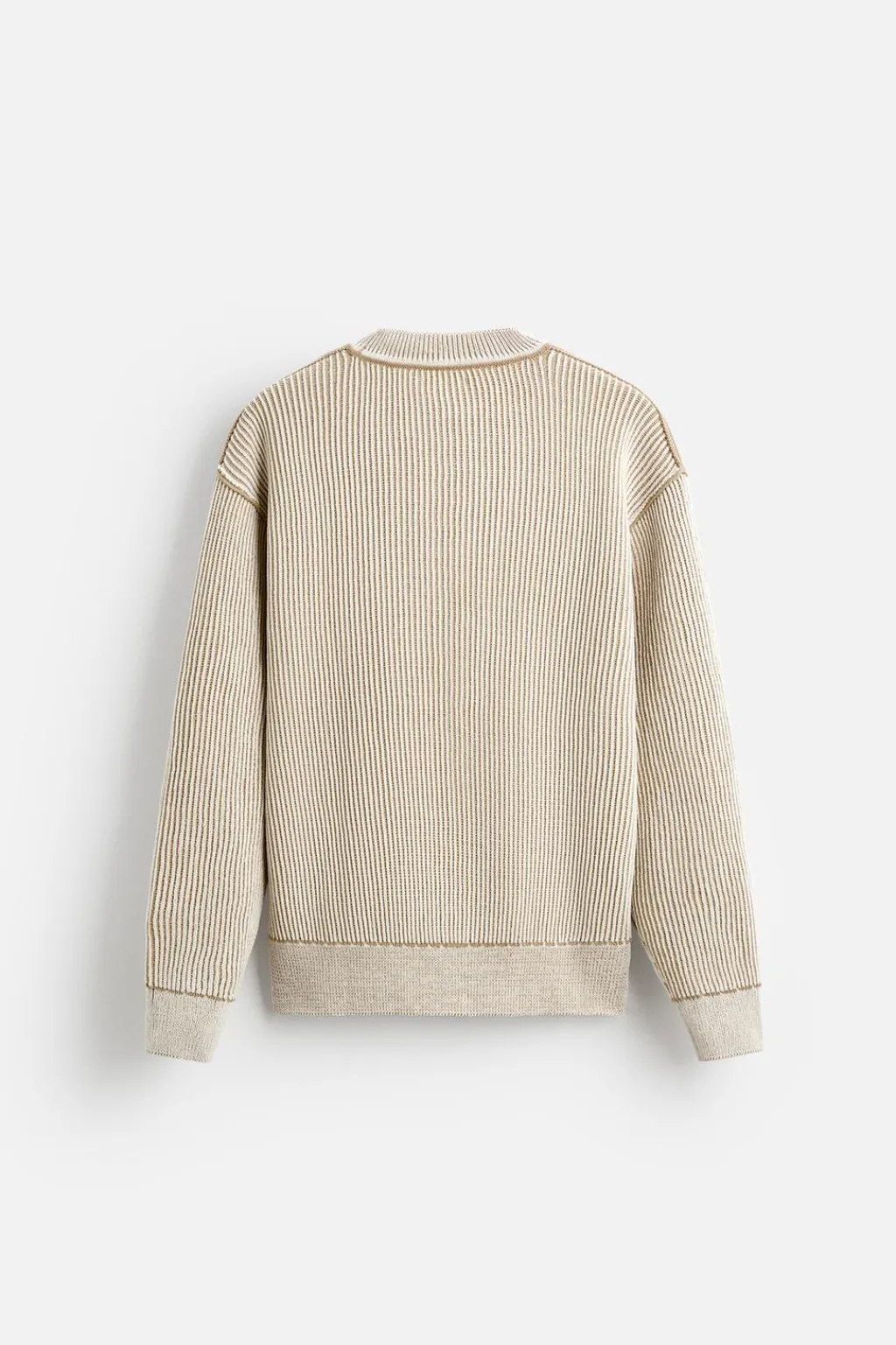 Jersey regular fit tejido en hilatura con textura chenilla. Cuello redondo y manga larga. Acabados en rib.