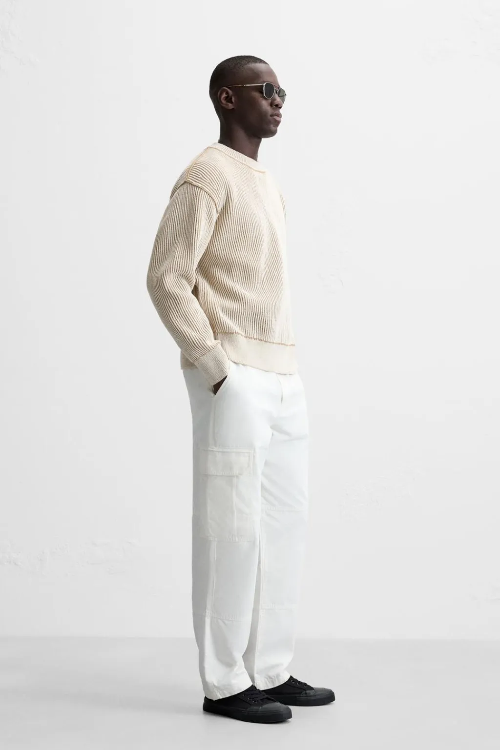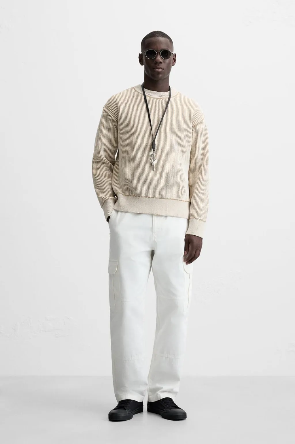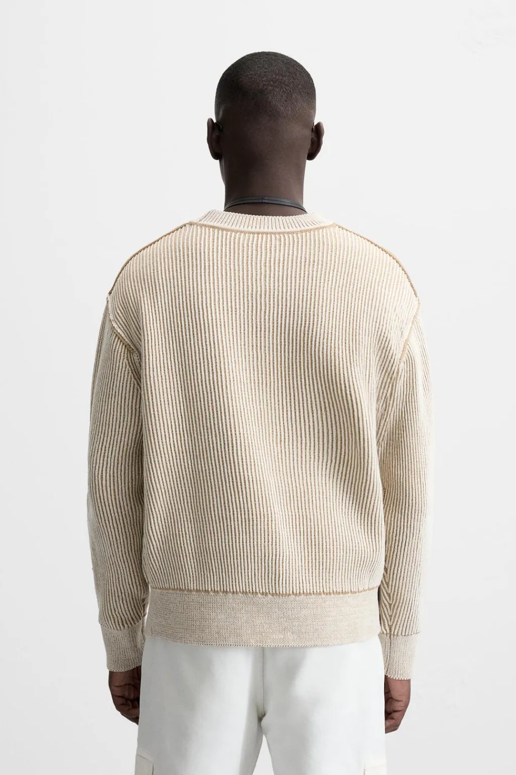 Jersey regular fit tejido en hilatura con textura chenilla. Cuello redondo y manga larga. Acabados en rib.
