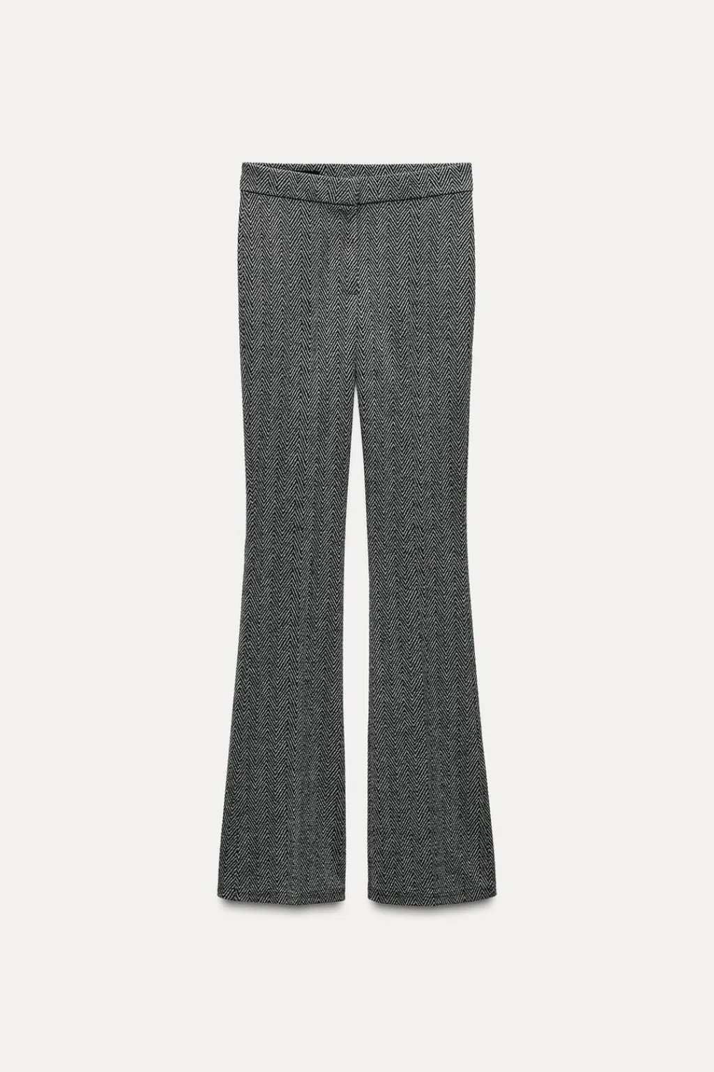Leggings de tiro medio con cintura elástica. Bajo en evasé. Cierre frontal con cremallera y botones.
