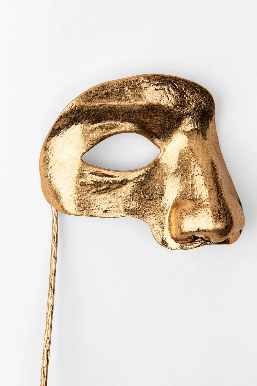 Máscara metálica con forma de medio rostro.