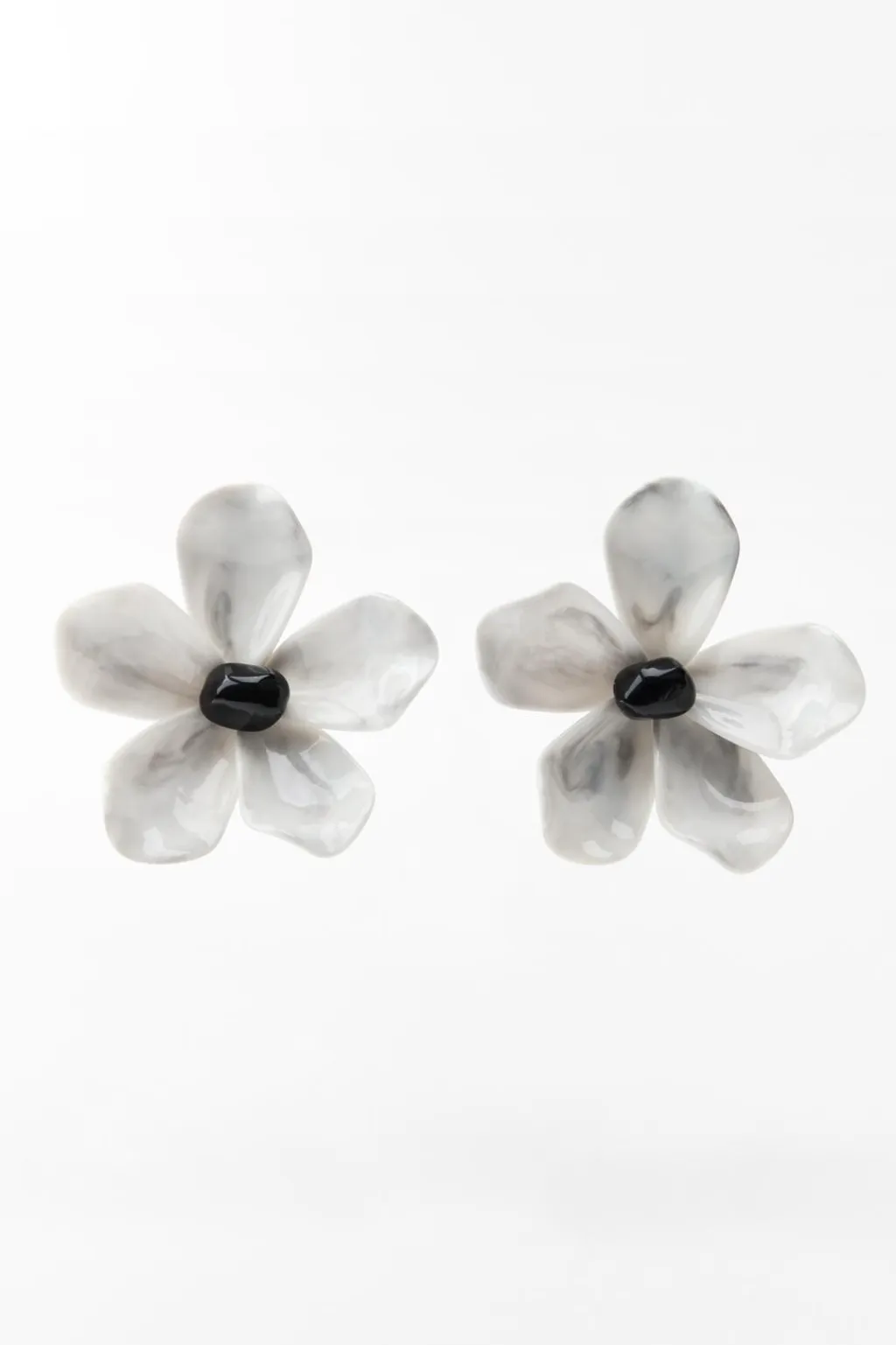 Maxi pendientes en forma de flor realizados en resina. Cierre con tuerca.