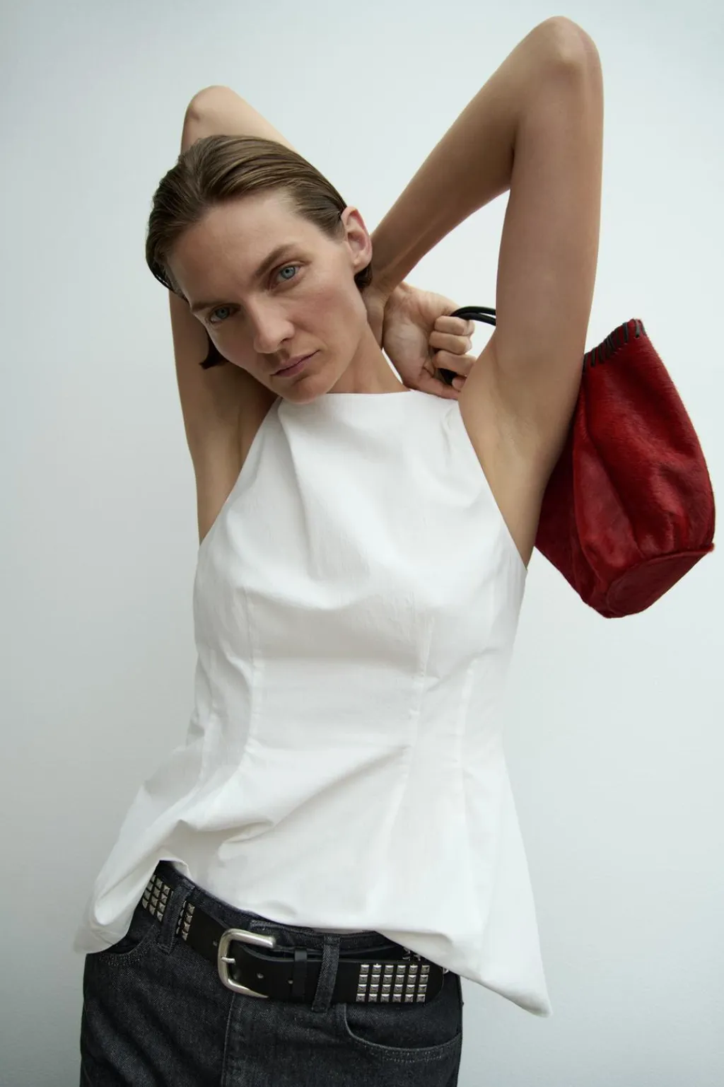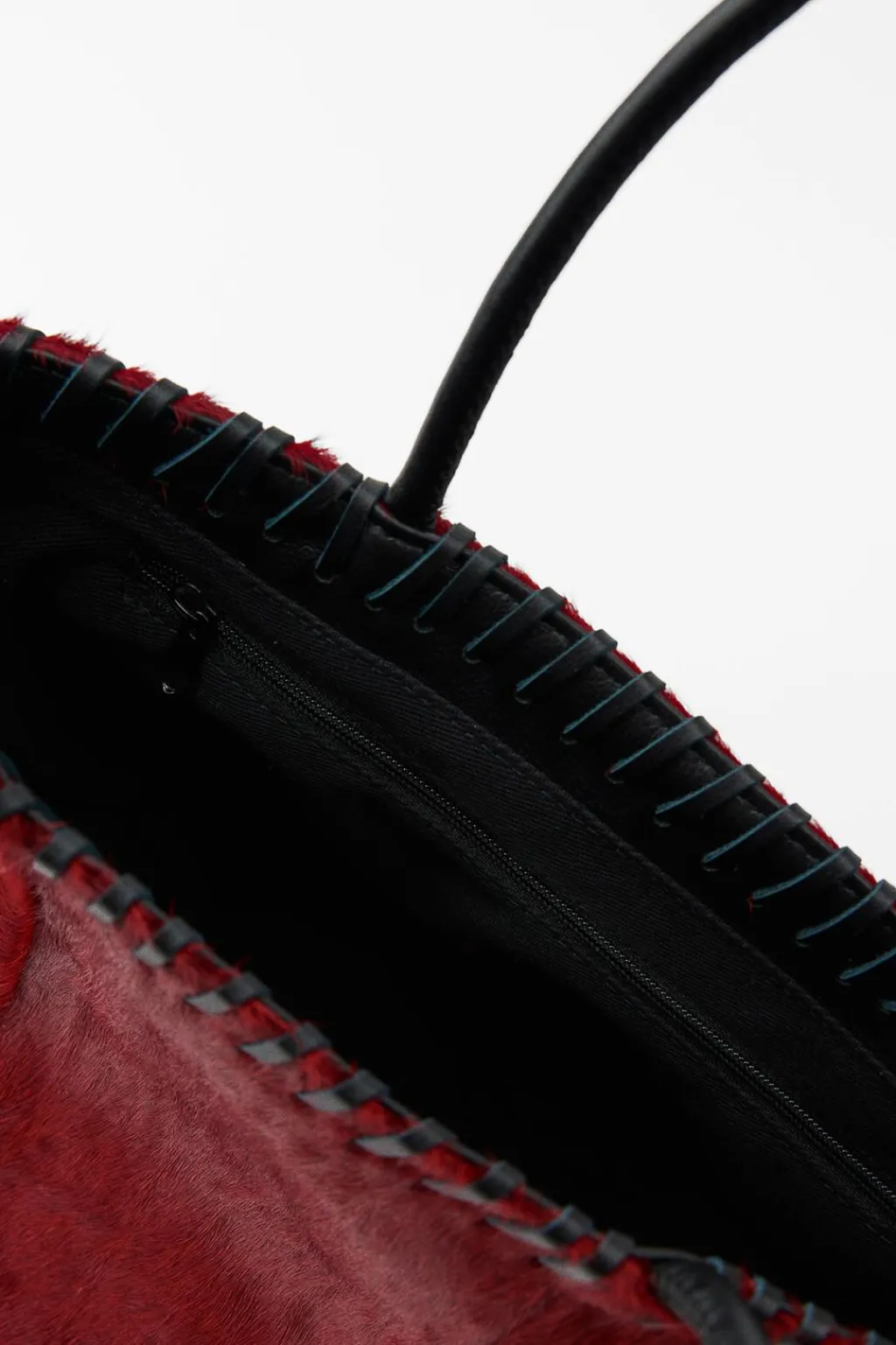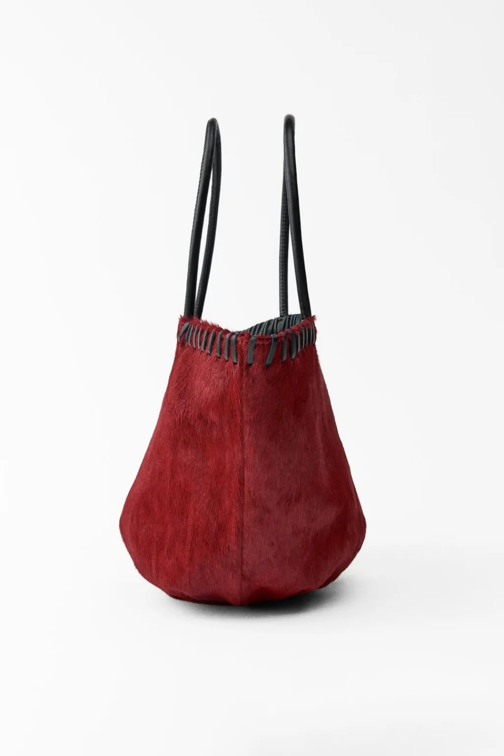 Bolso formato mini saca realizado en piel 100%. Asas de mano y costuras a contraste.