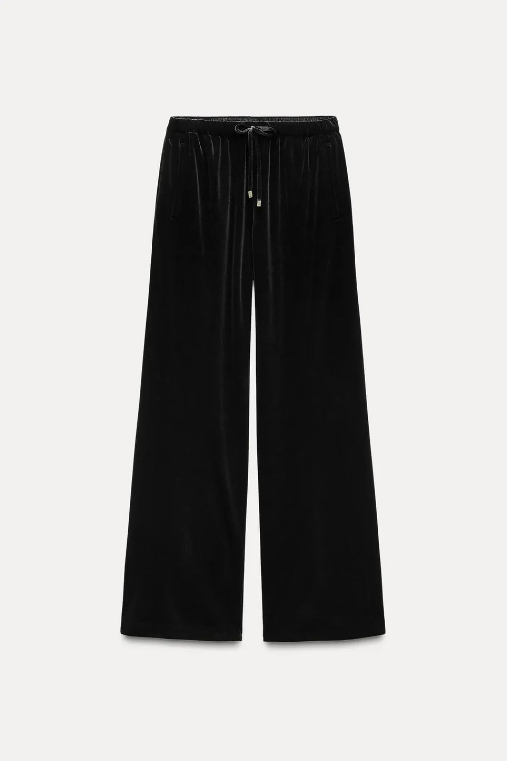 Pantalón de tiro alto con cintura elástica ajustable con cordón. Bolsillos delanteros de vivo. Pernera ancha.