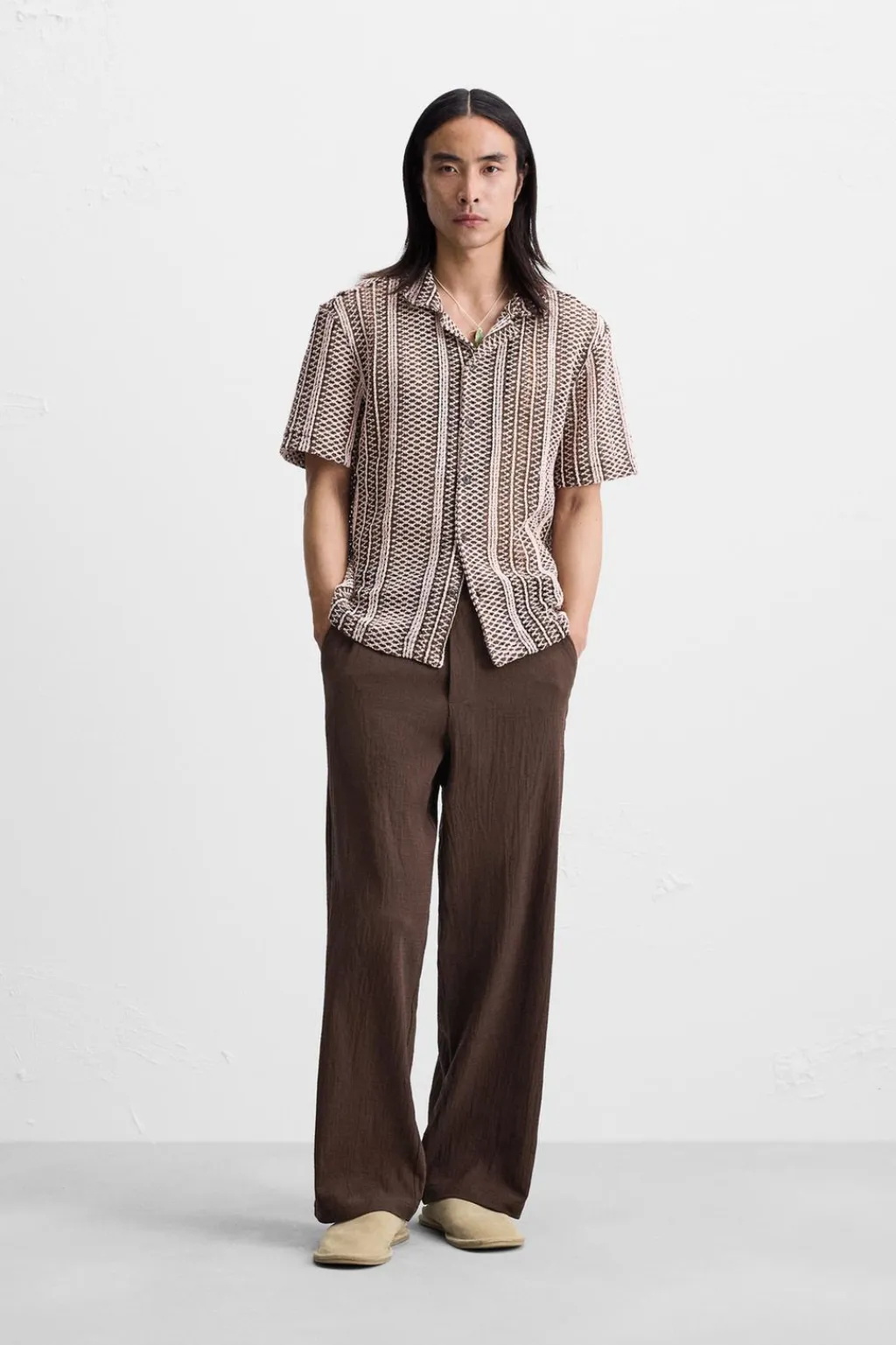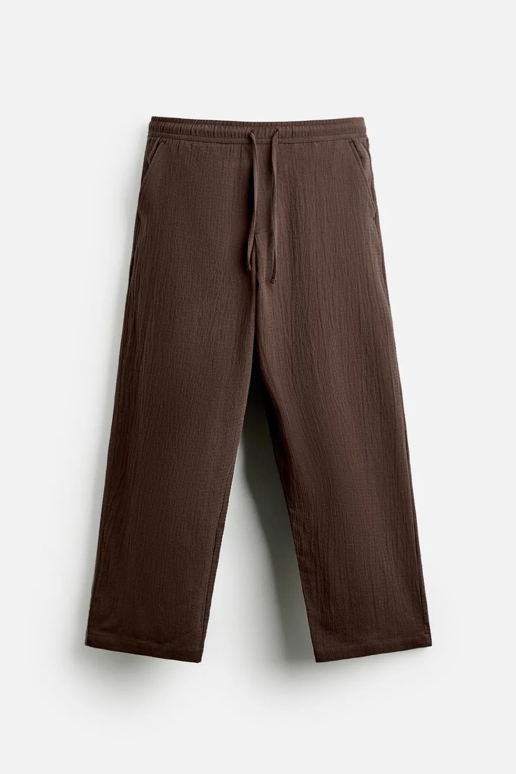Pantalón relaxed fit confeccionado en tejido de algodón con elasticidad. Cintura elástica ajustable con cordón. Bolsillos frontales y detalle de bolsillos traseros.