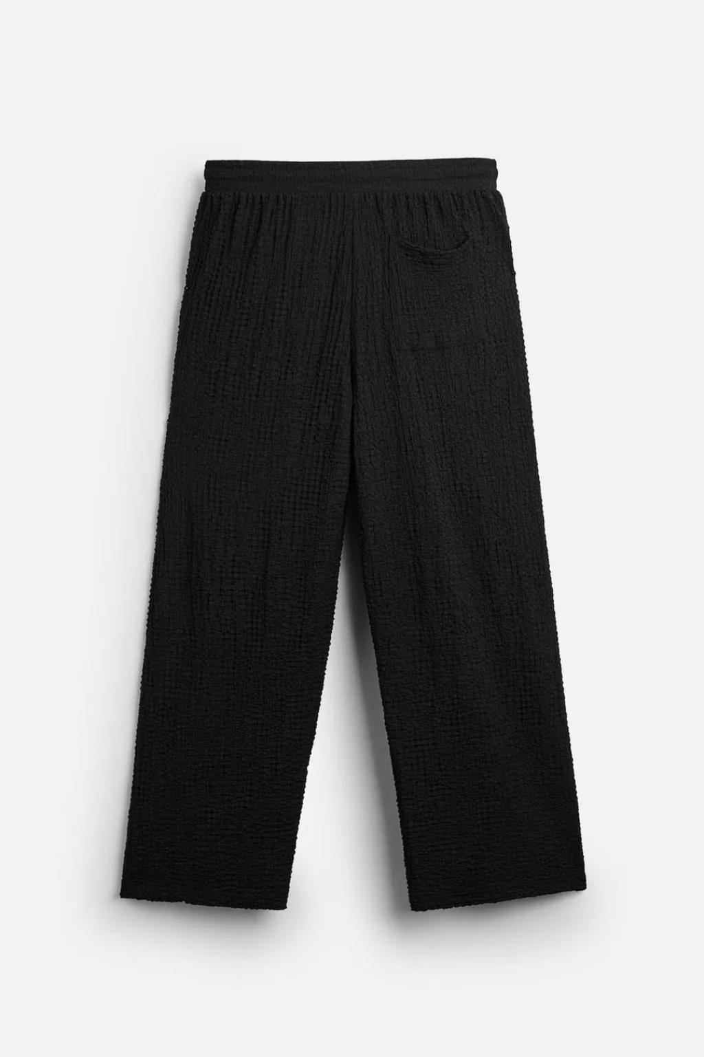 Pantalón relaxed fit. Cintura elástica ajustable con cordón. Bolsillos laterales y detalle de bolsillos trasero de plastrón.