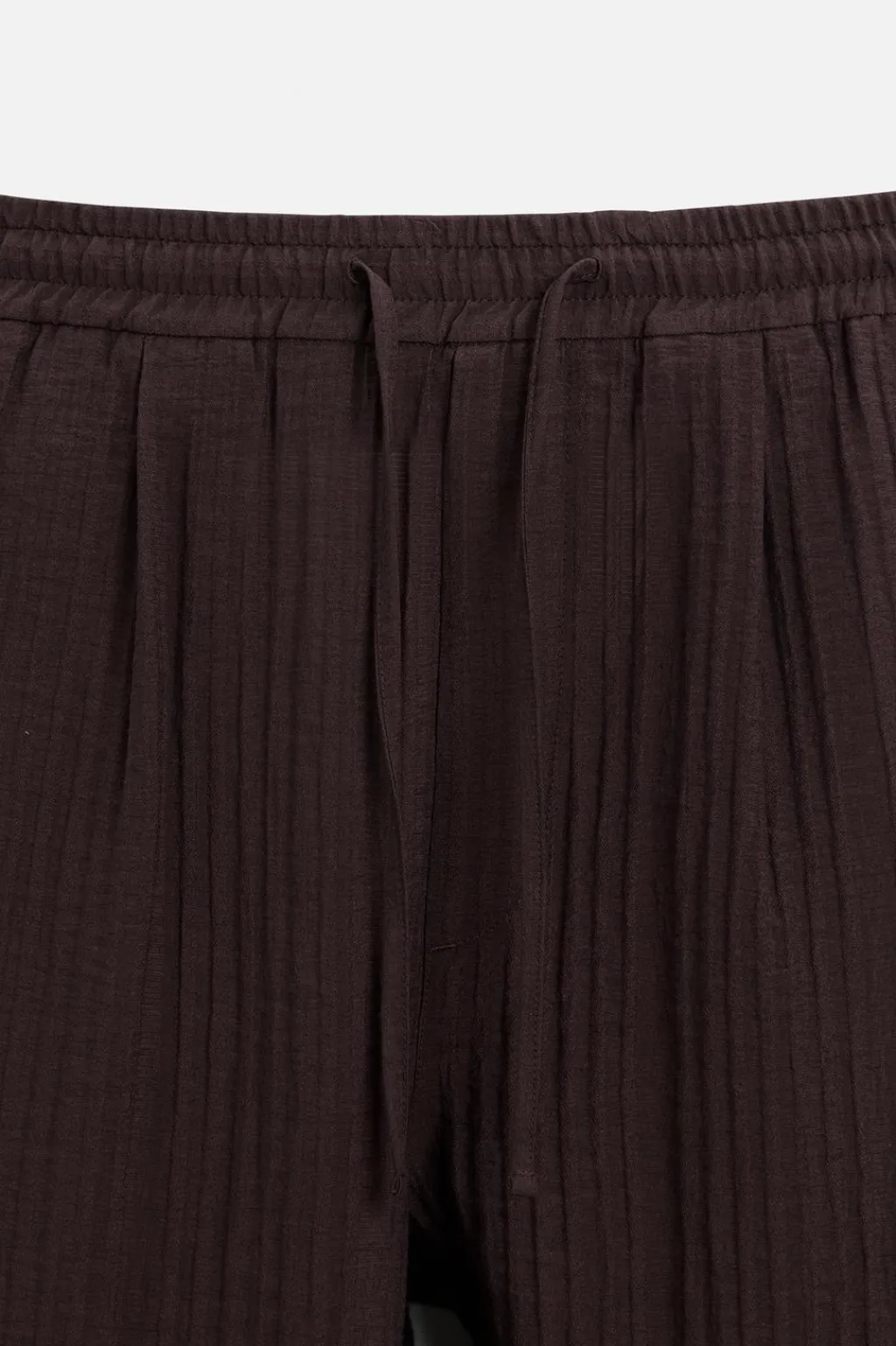 Pantalón relaxed fit confeccionado en tejido con viscosa. Cintura elástica ajustable con cordón. Bolsillos delanteros y detalle de bolsillo trasero de plastrón.