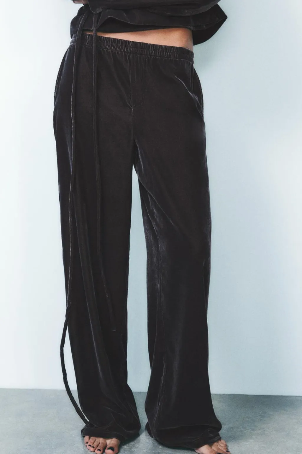 Pantalón de tiro medio y cintura elástica. Bolsillos laterales. Pierna recta.