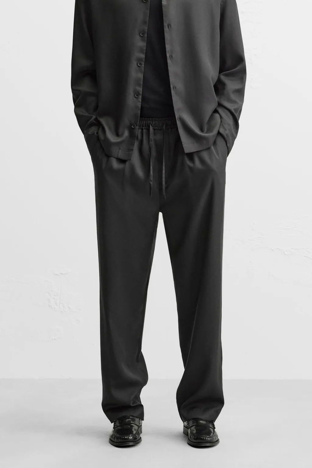 Pantalón relaxed fit confeccionado en tejido de lyocell. Cintura elástica ajustable con cordón. Bolsillos delanteros y detalle de bolsillos traseros de vivo.