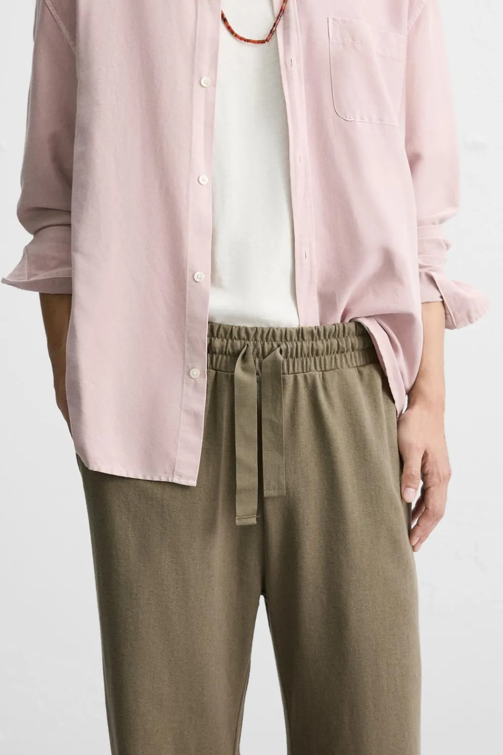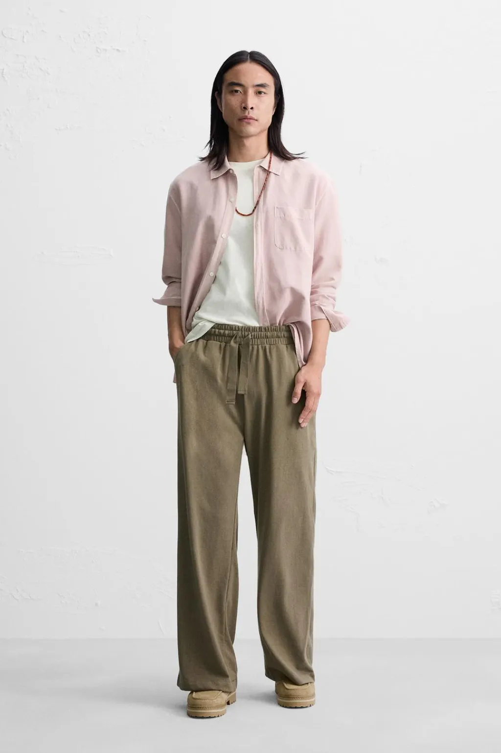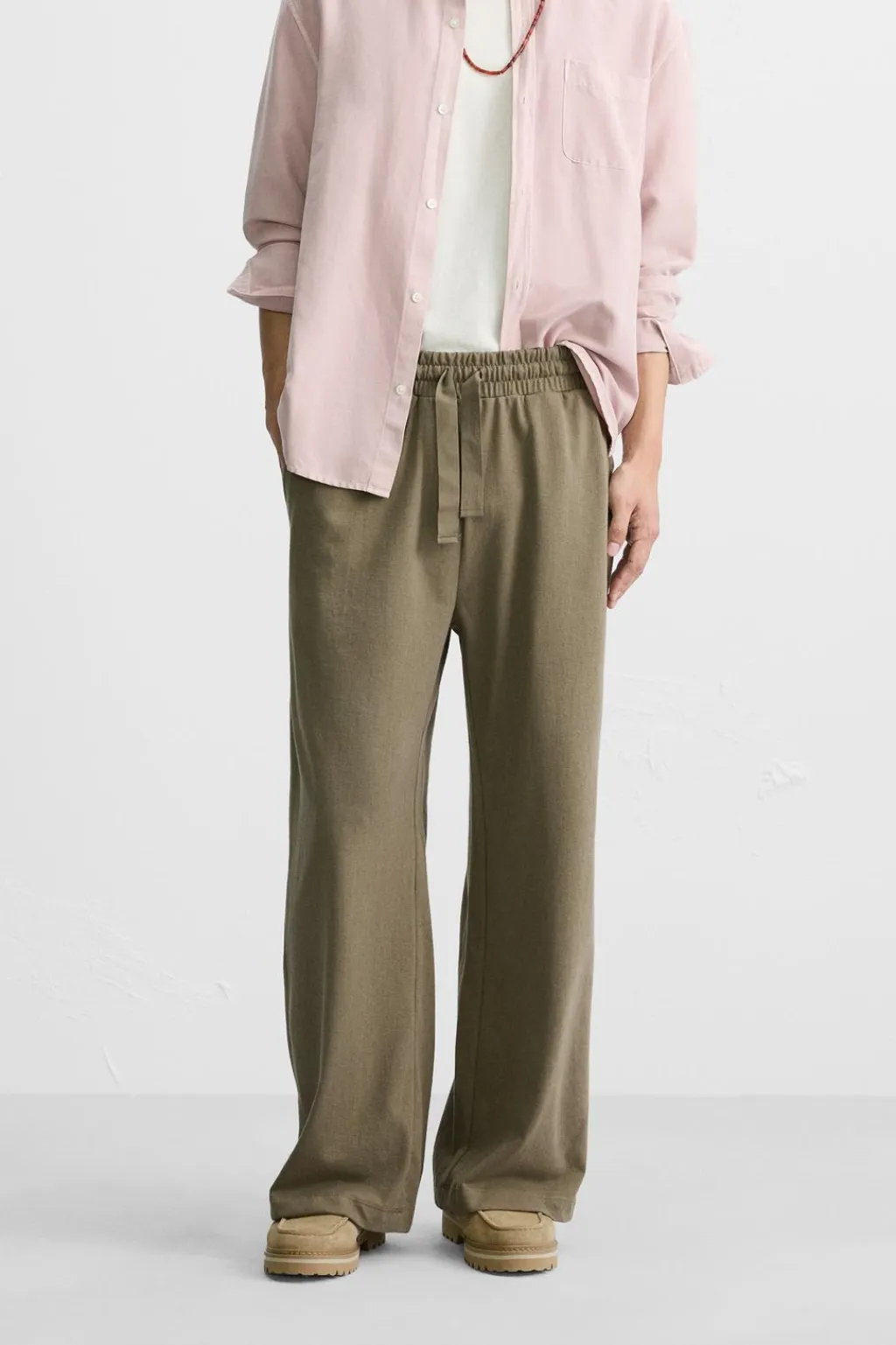 Pantalón relaxed fit. Cintura elástica ajustable con cordón. Bolsillos delanteros y detalle de bolsillo trasero de plastrón.