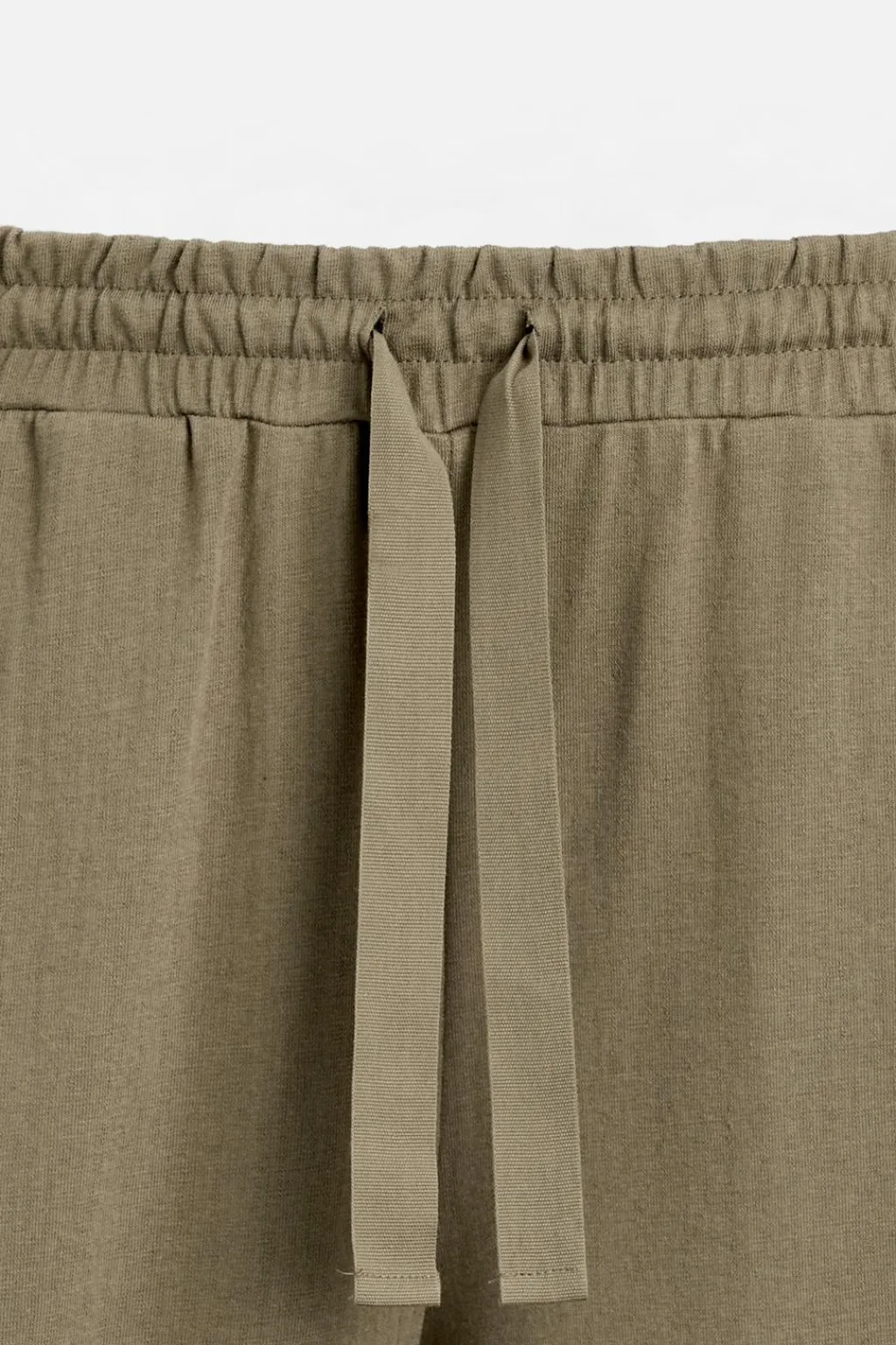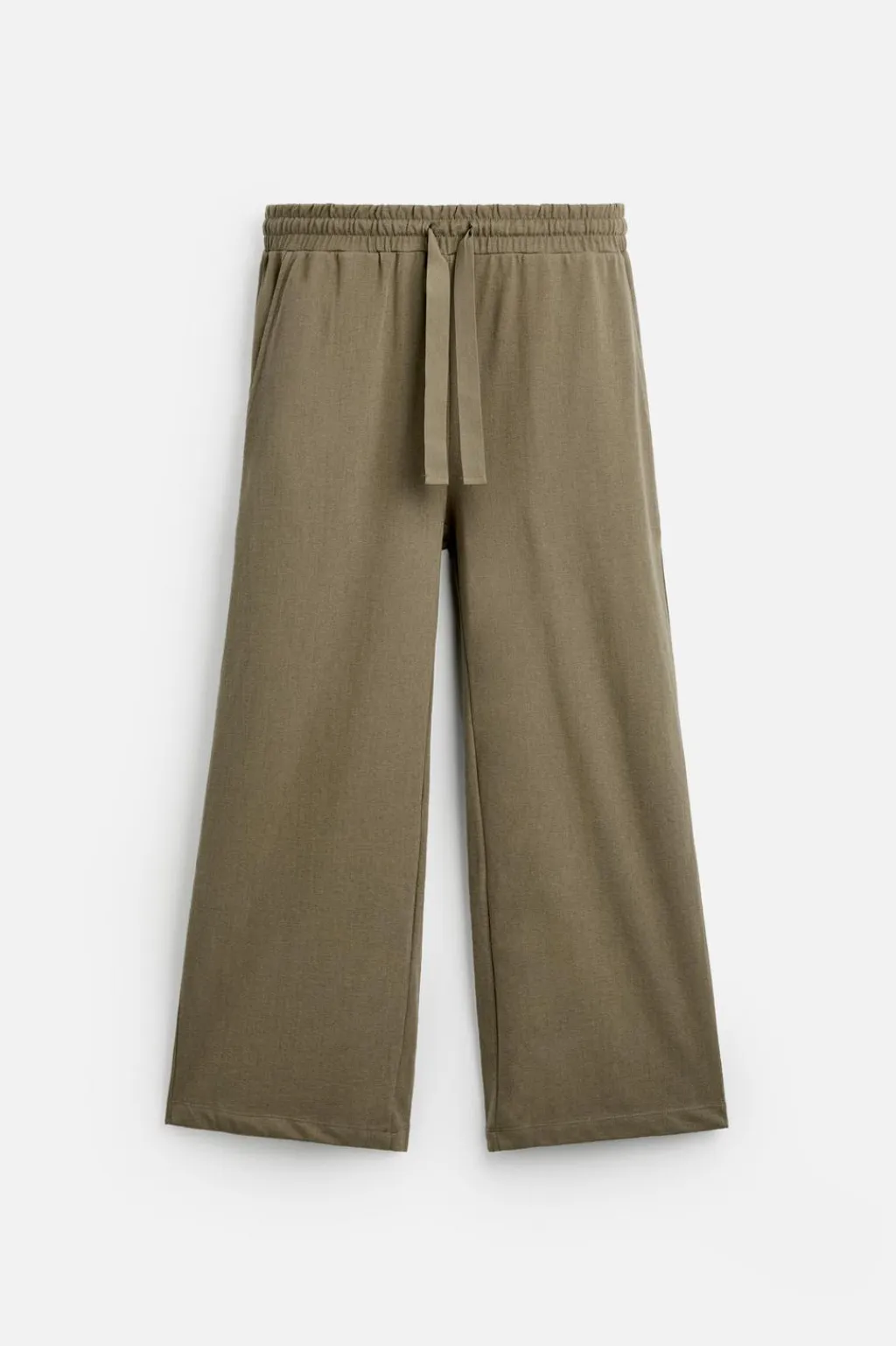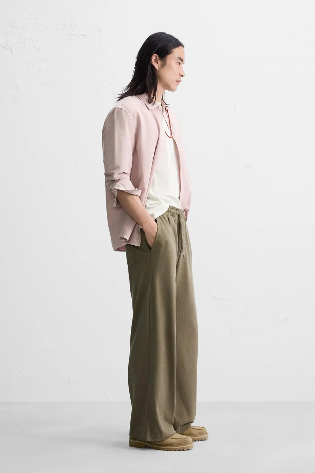 Pantalón relaxed fit. Cintura elástica ajustable con cordón. Bolsillos delanteros y detalle de bolsillo trasero de plastrón.