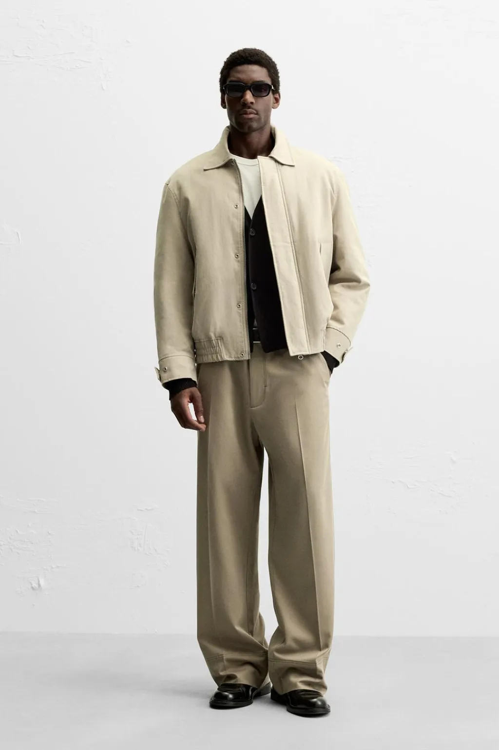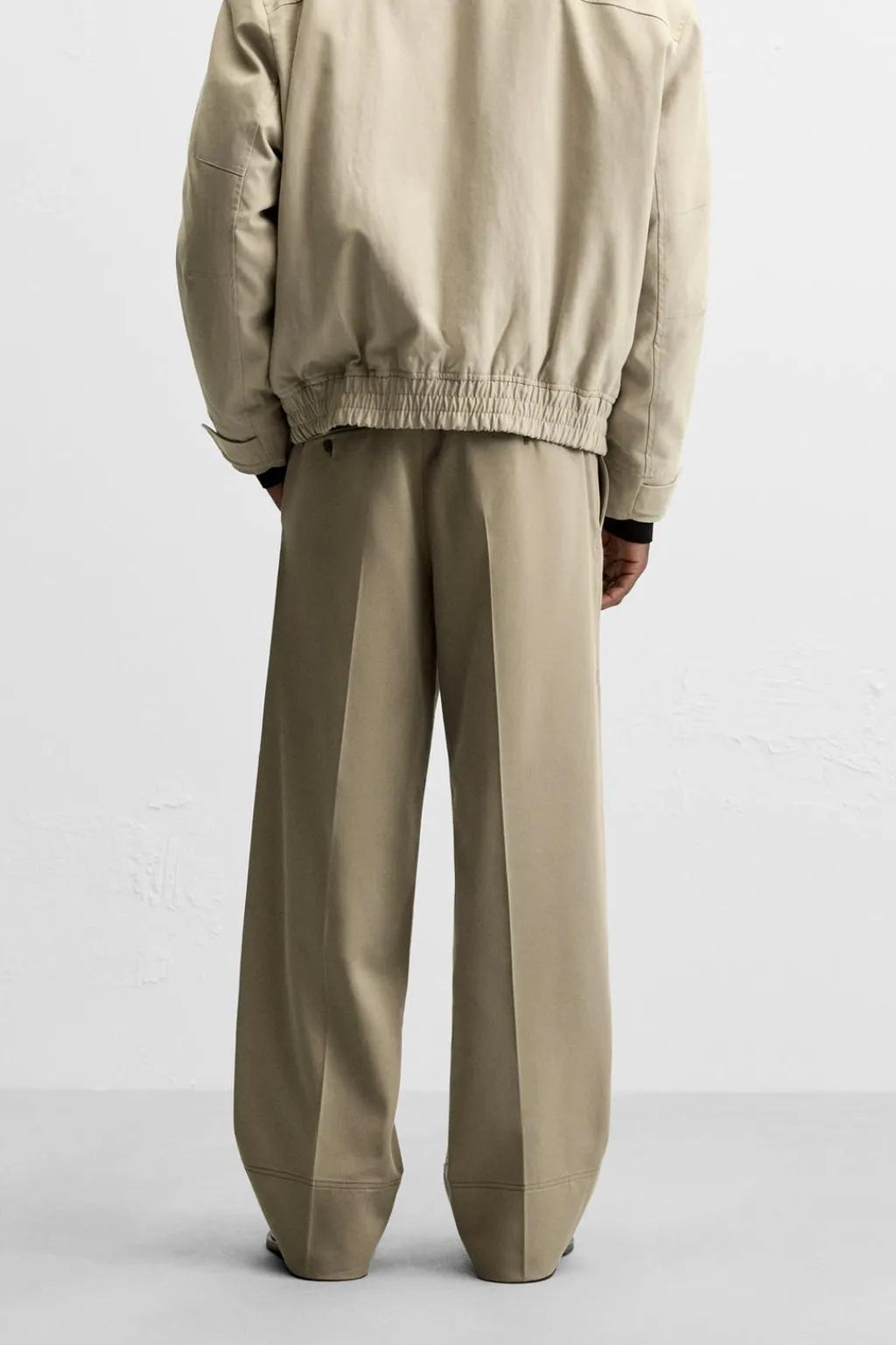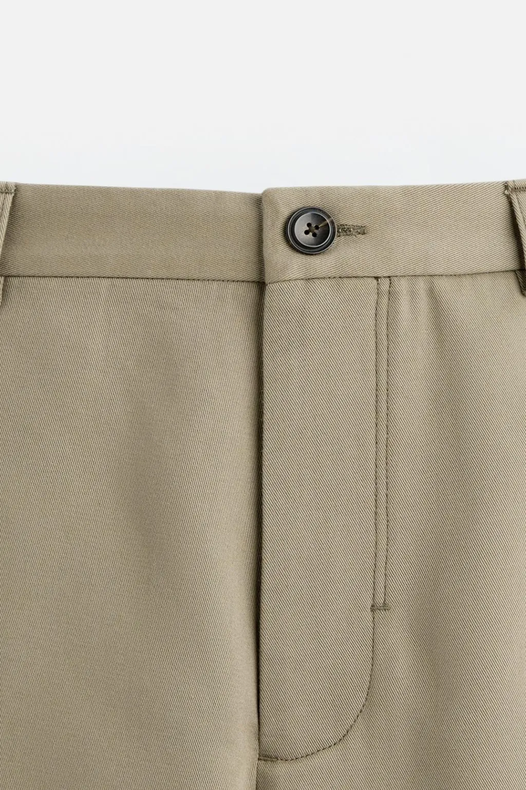 Pantalón wide confeccionado en tejido con mezcla de viscosa y algodón. Bolsillos delanteros y detalle de bolsillos traseros de vivo. Cierre frontal con cremallera y botón.