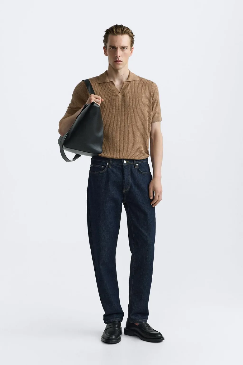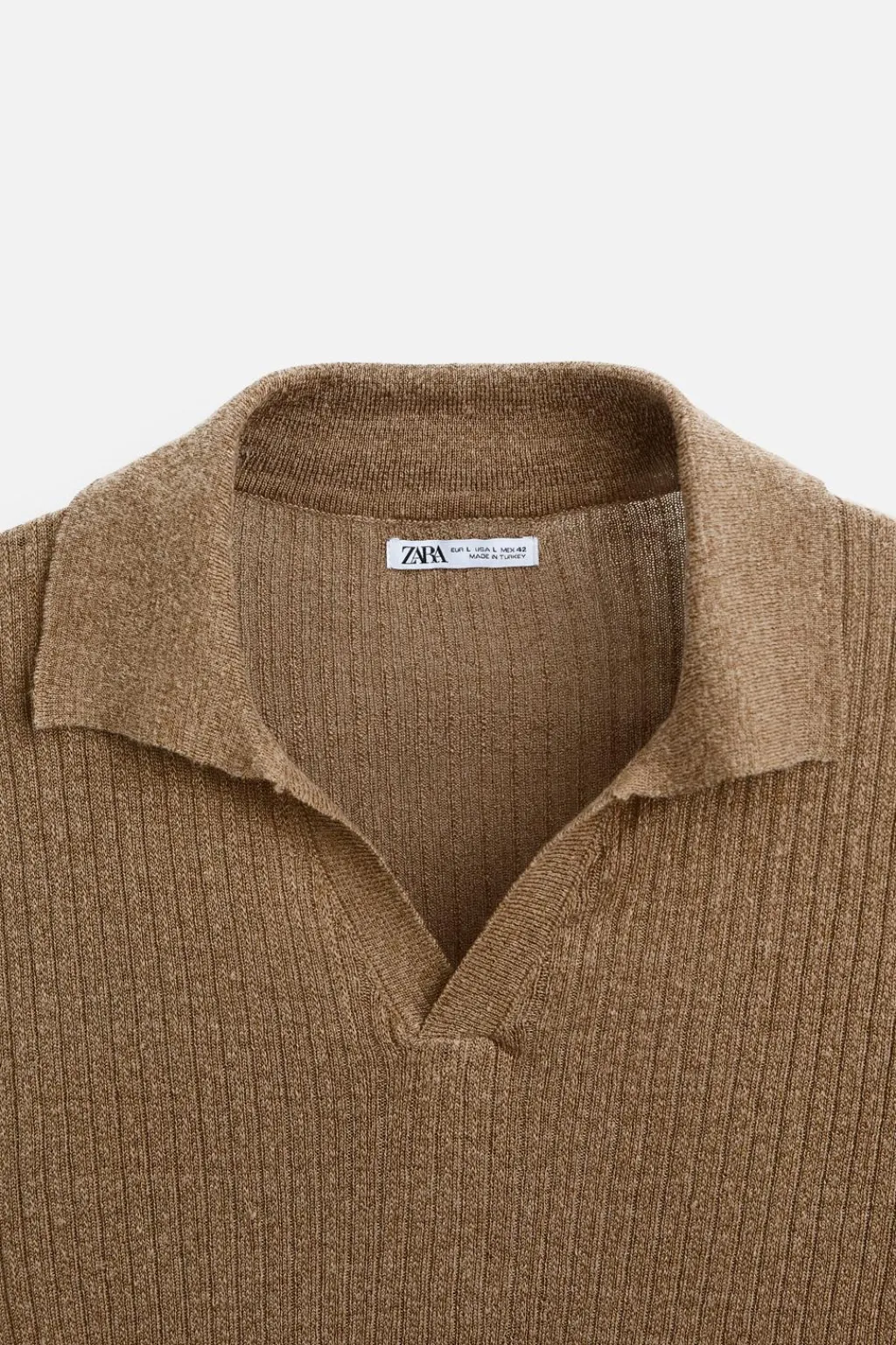 Polo de punto tejido en hilatura con lino y viscosa. Cuello solapa con abertura frontal y manga corta. Acabados en rib.