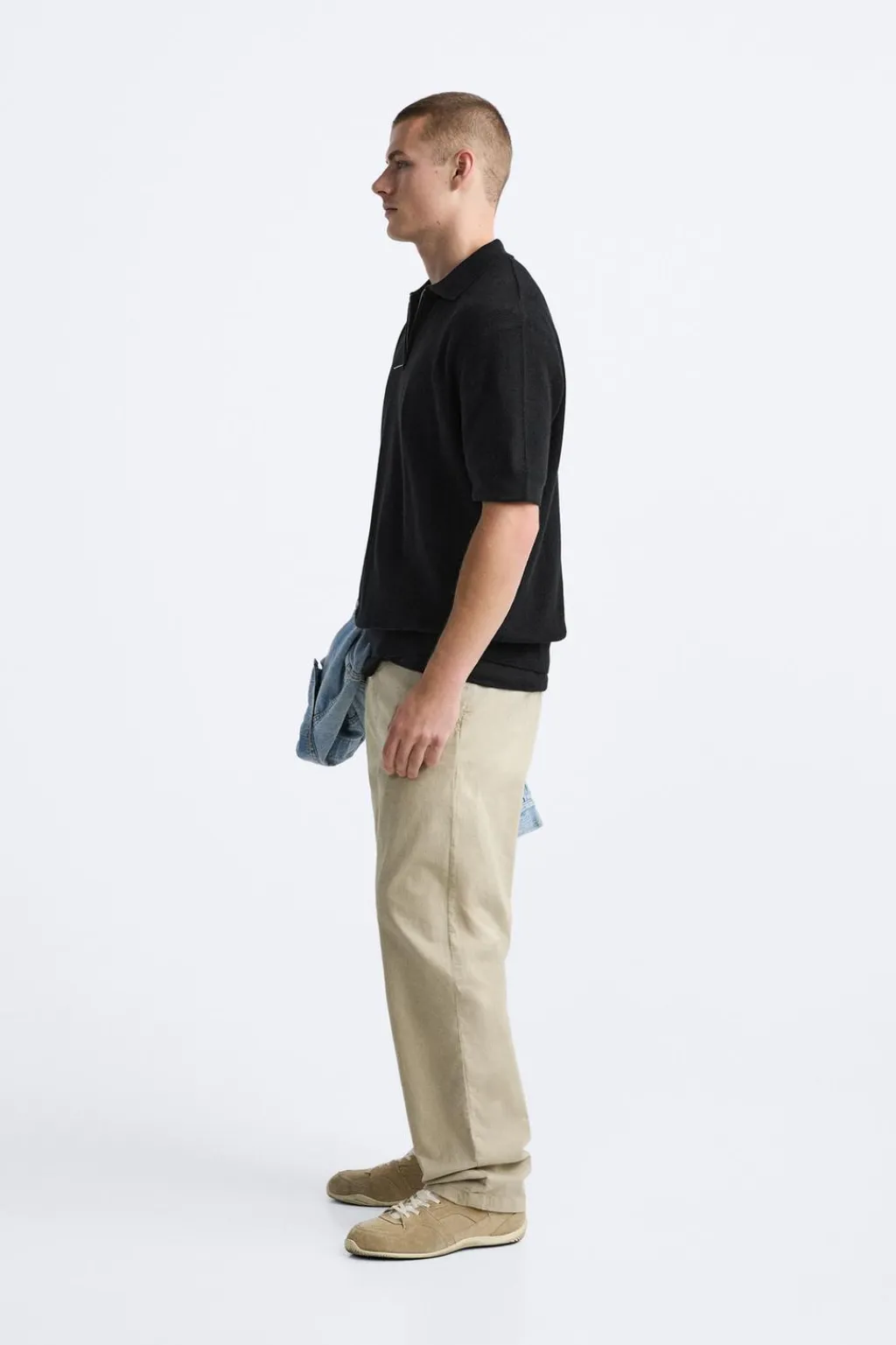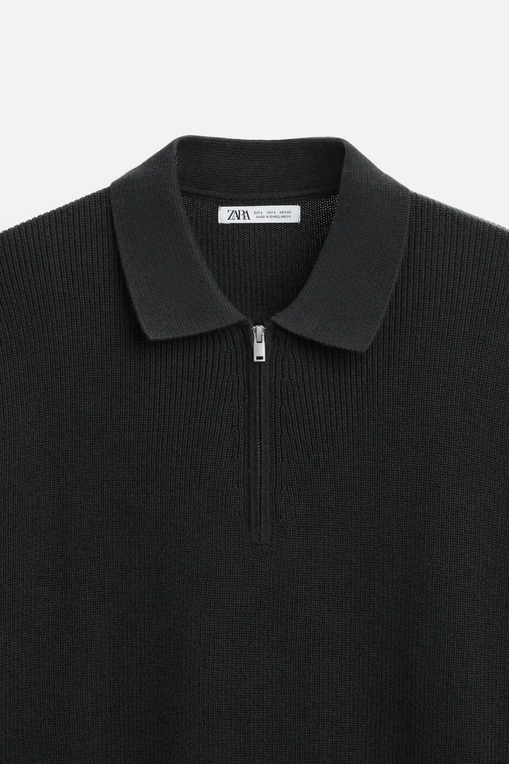 Polo de punto tejido en hilatura de algodón. Cuello solapa con cierre frontal de cremallera. Manga corta. Acabados en rib.