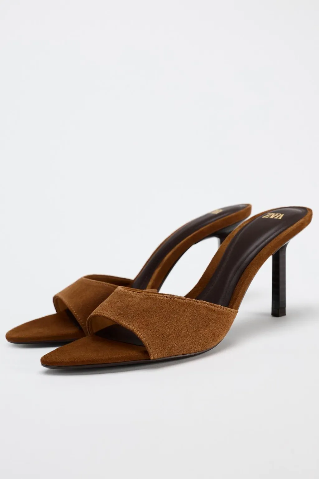 Zapato tipo sandalia tacón en serraje. Tacón alto y fino.