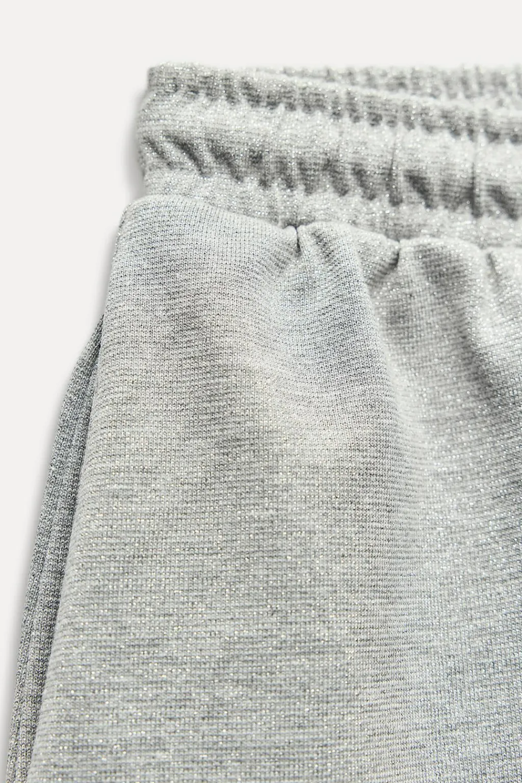 Shorts confeccionados con hilo metalizado. Tiro medio con cintura elástica ajustable con cordones. Bolsillos laterales. Detalle de texto en relieve.