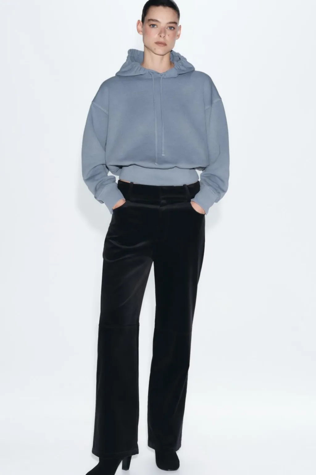 Sudadera con capucha ajustable con cordones. Manga larga. Acabados en rib a tono.