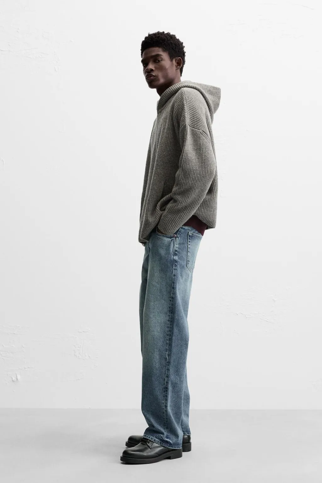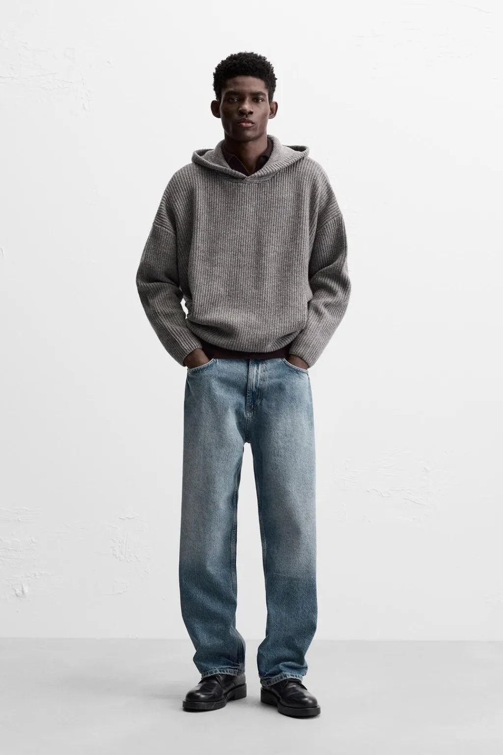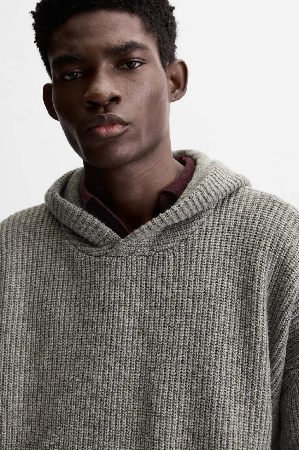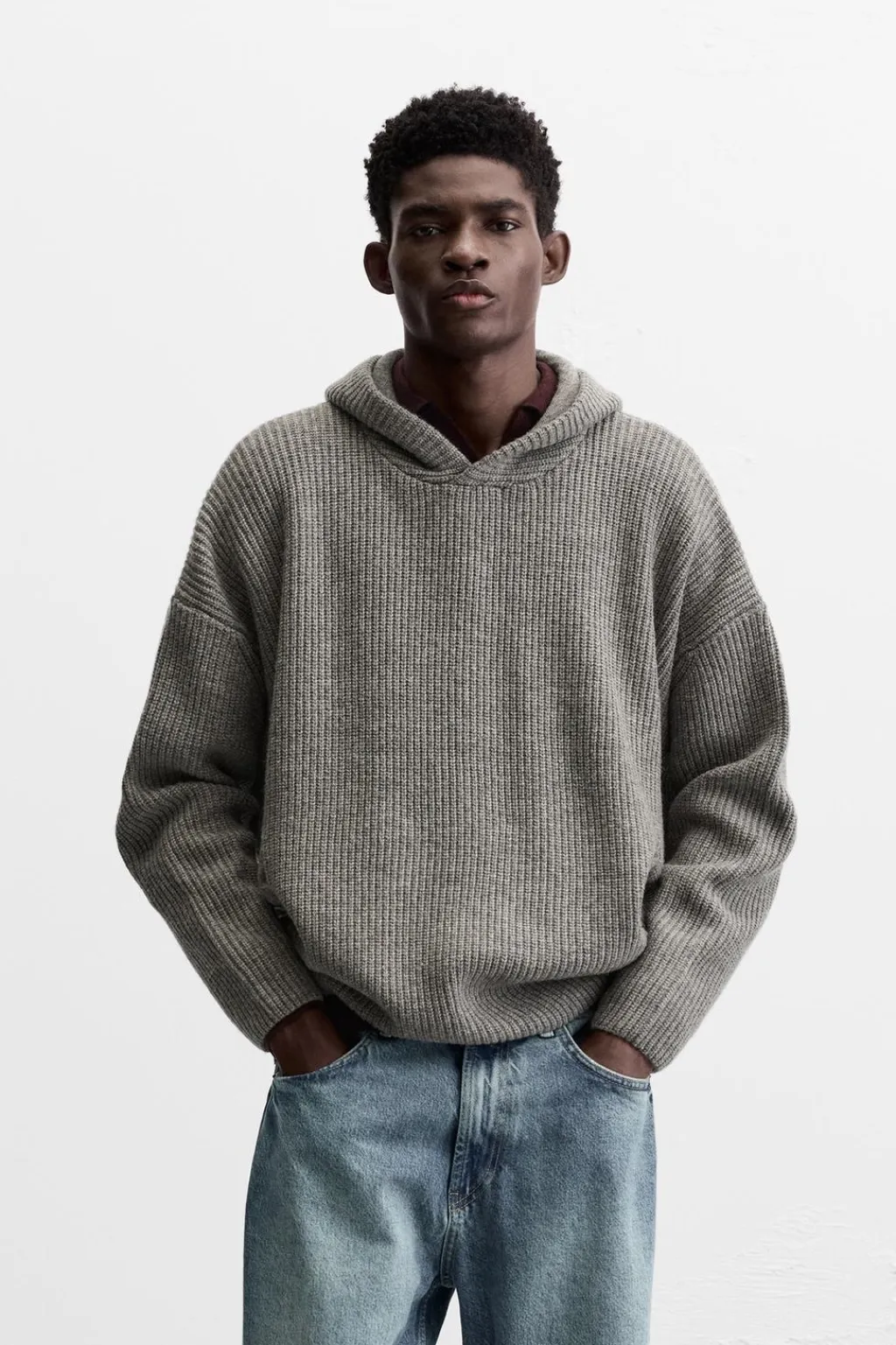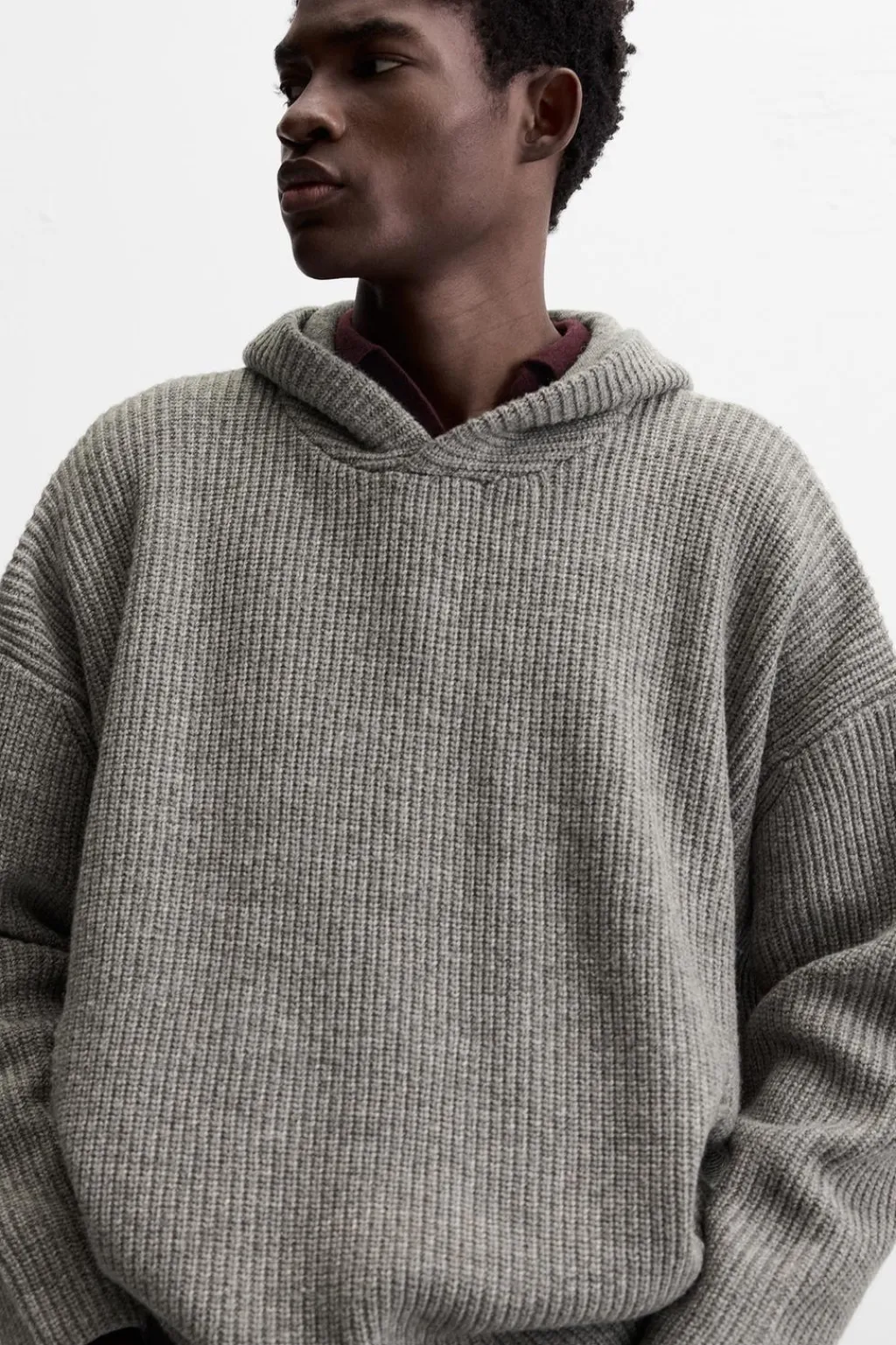 Sudadera oversize fit tejida en hilatura con lana. Cuello con capucha ajustable y manga larga. Acabados en rib.