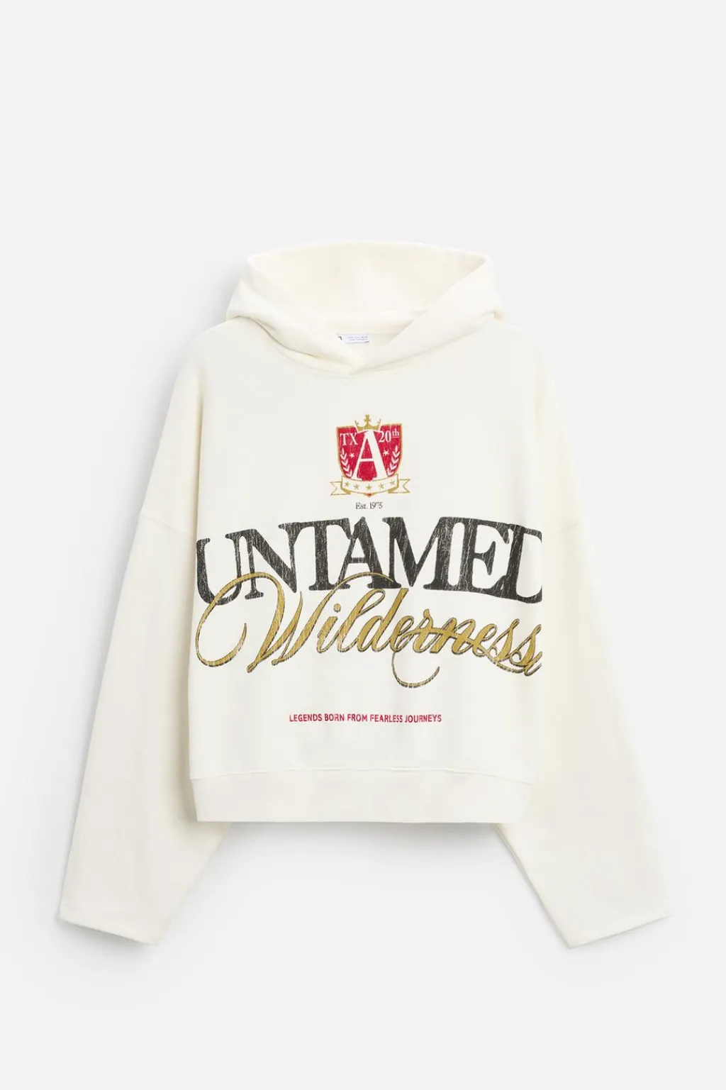 Sudadera cropped fit. Cuello con capucha y manga larga. texto estampado combinado a contraste en delantero. Efecto lavado. Bajo acabado en rib.