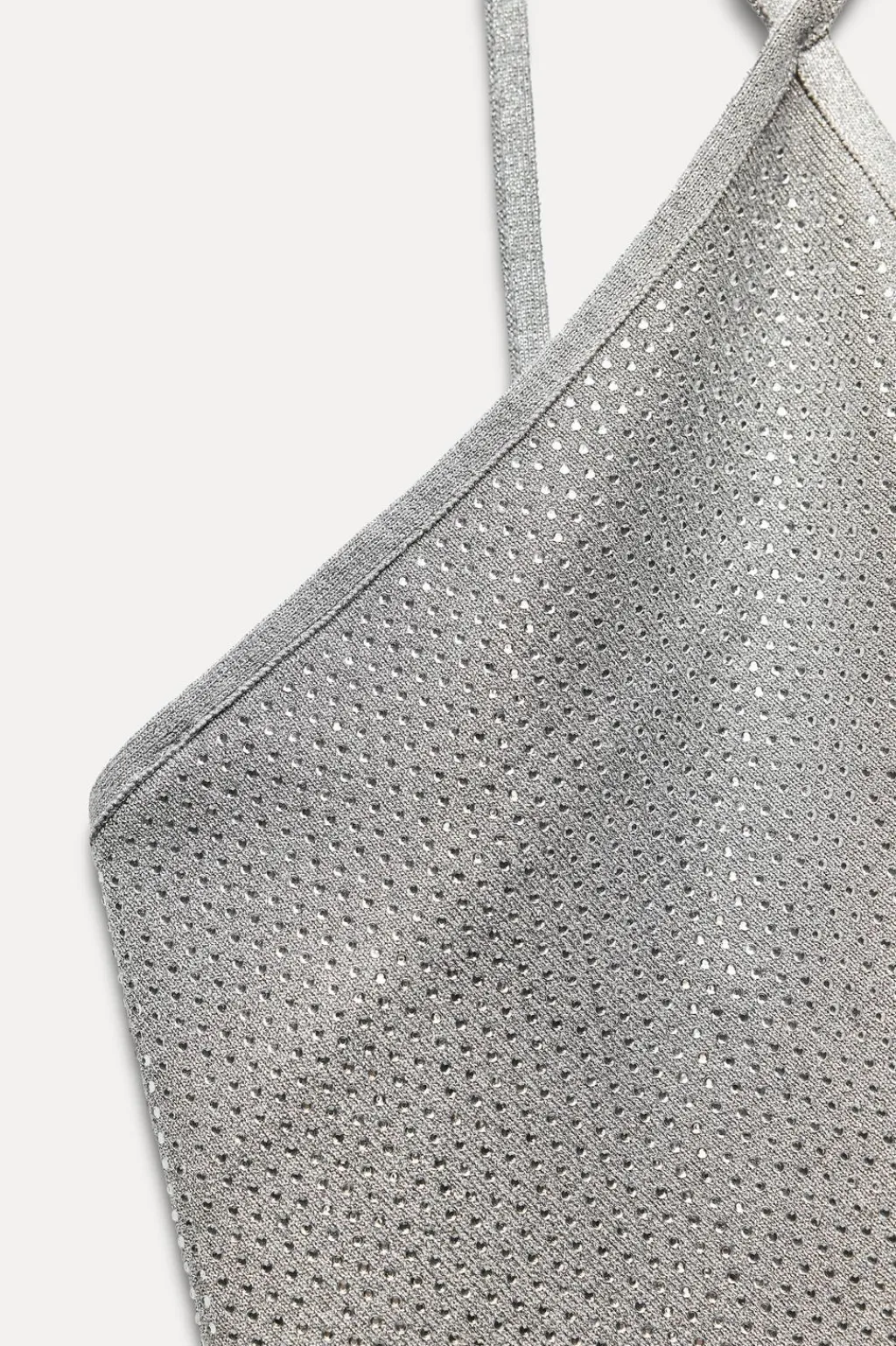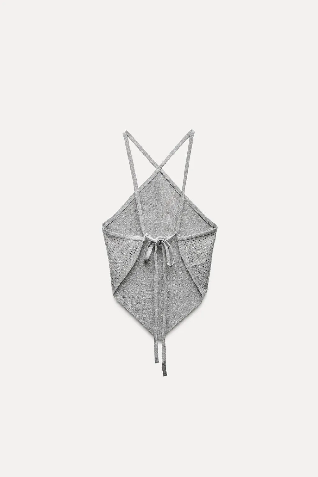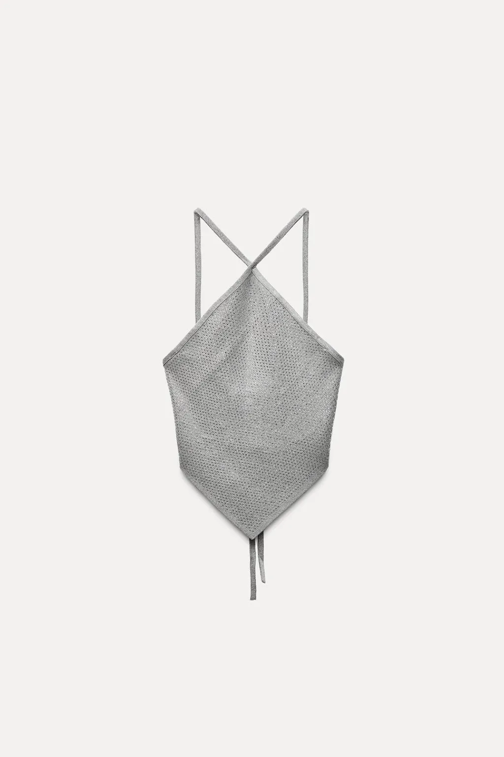 Top de cuello halter con brillos delanteros. Detalle de espalda abierta con tiras finas anudadas.
