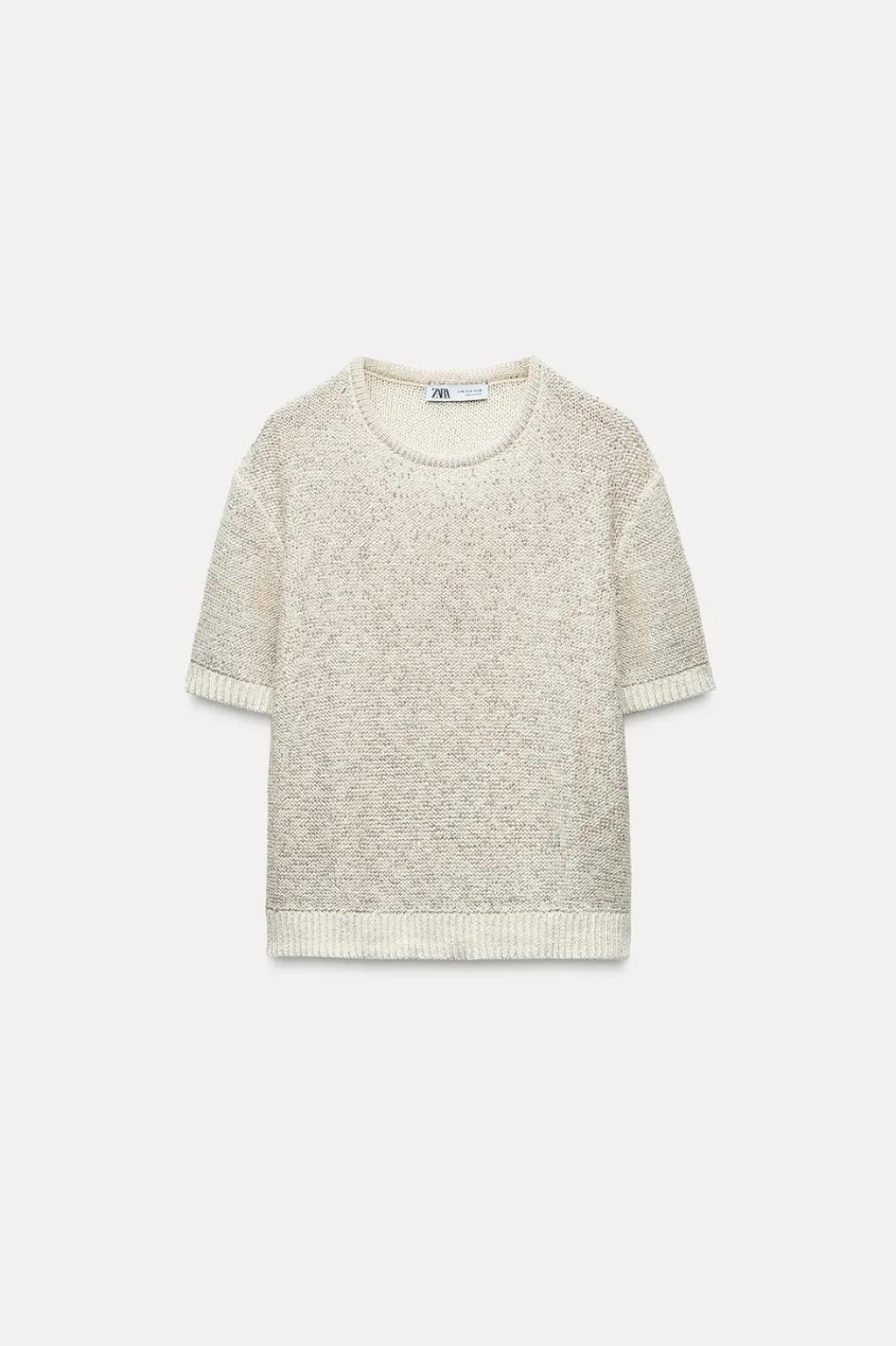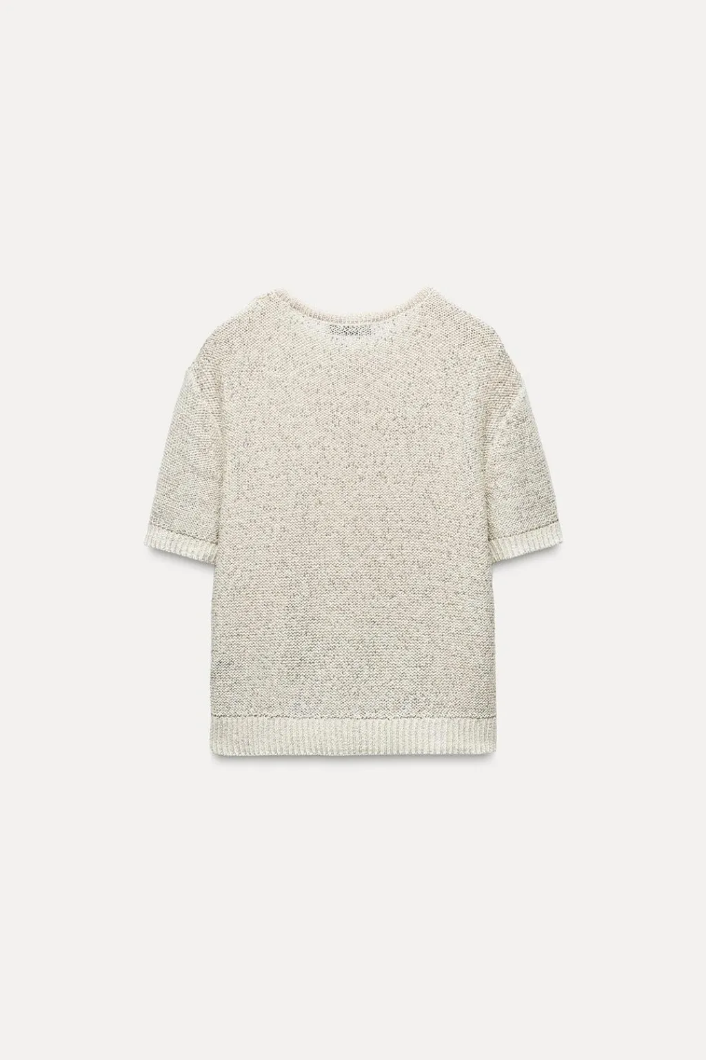 Top de cuello redondo y manga corta. Detalle aplicación de lentejuelas. Acabados en rib.