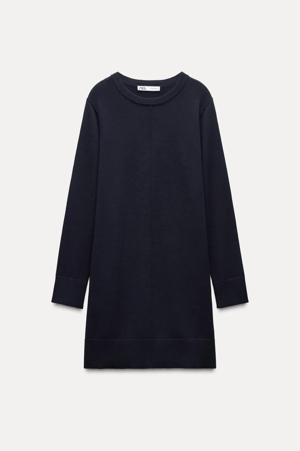 Vestido de cuello redondo y manga larga. Detalle de nervio delantero marcado. Acabados en rib.