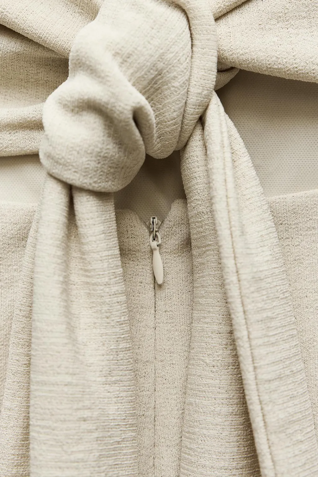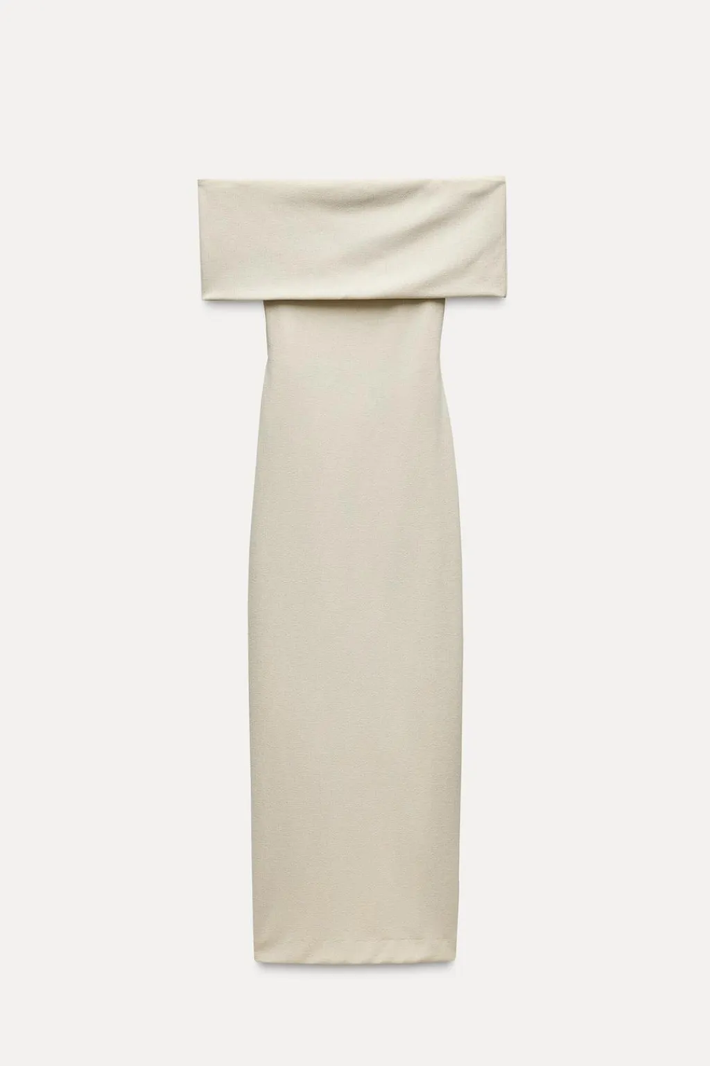 Vestido de escote recto y hombros descubiertos con manga corta. Detalle de aberturas en espalda y lazada en mismo tejido. Forro interior.