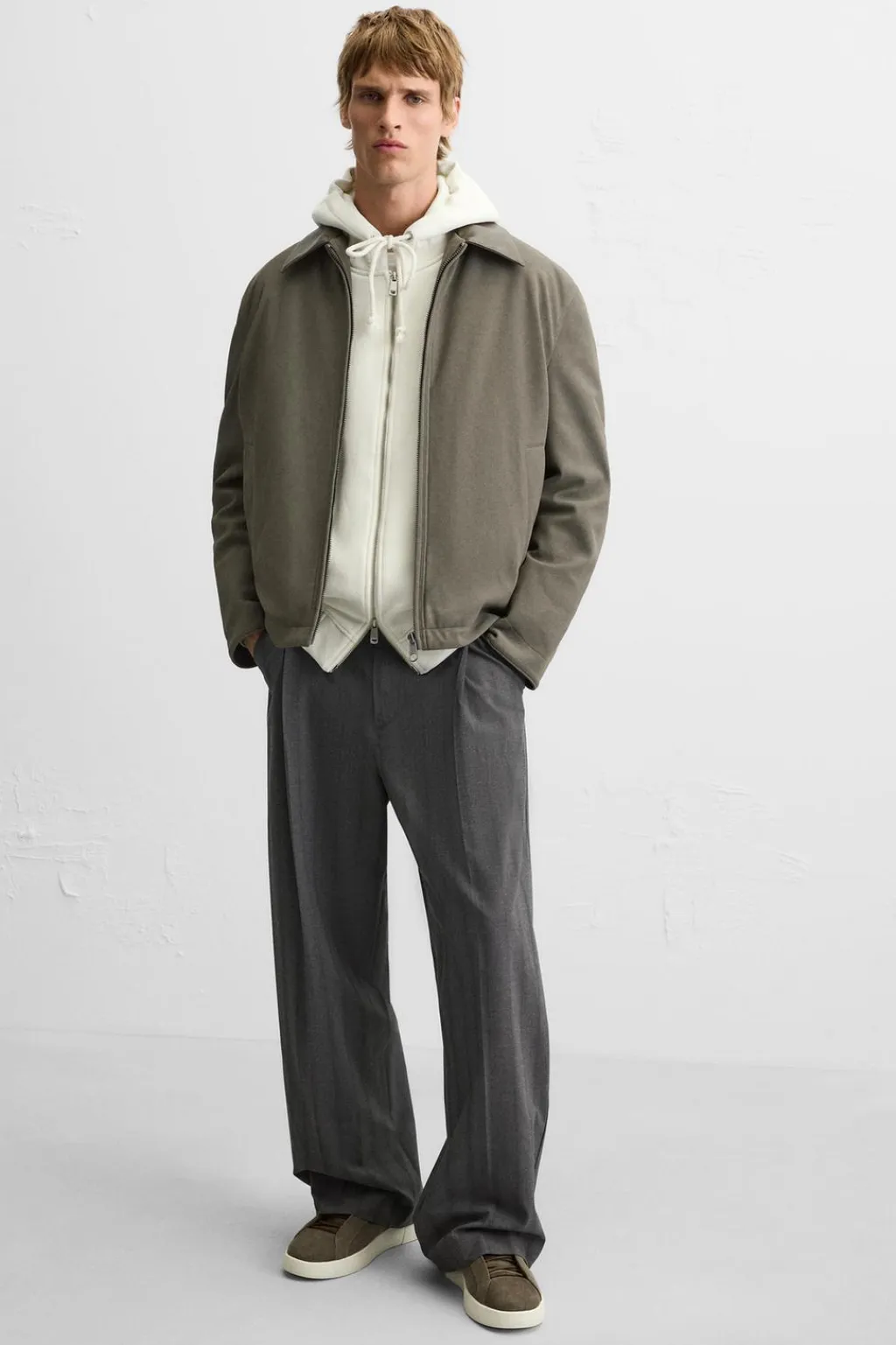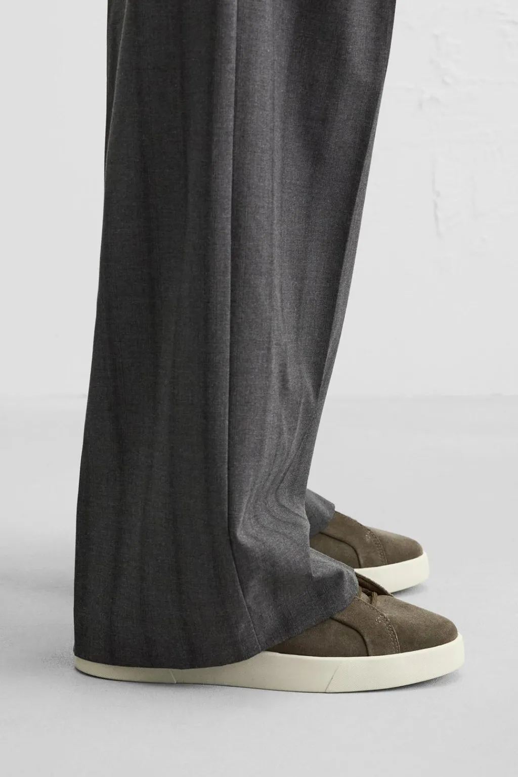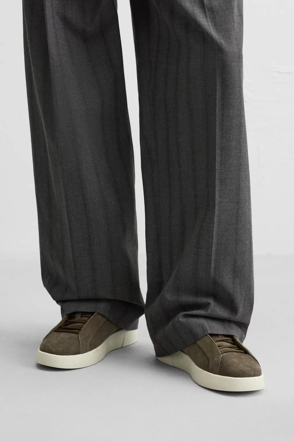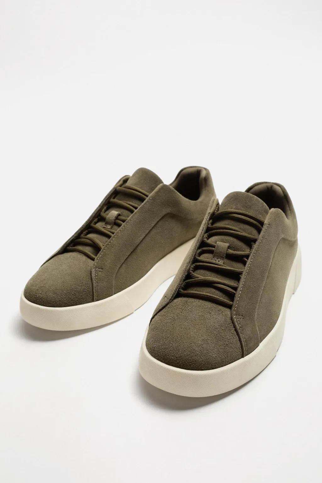 Zapatilla deportiva. Parte superior fabricada en piel con acabado serraje. Detalle de cordonera oculta. Suela con ligero volumen.