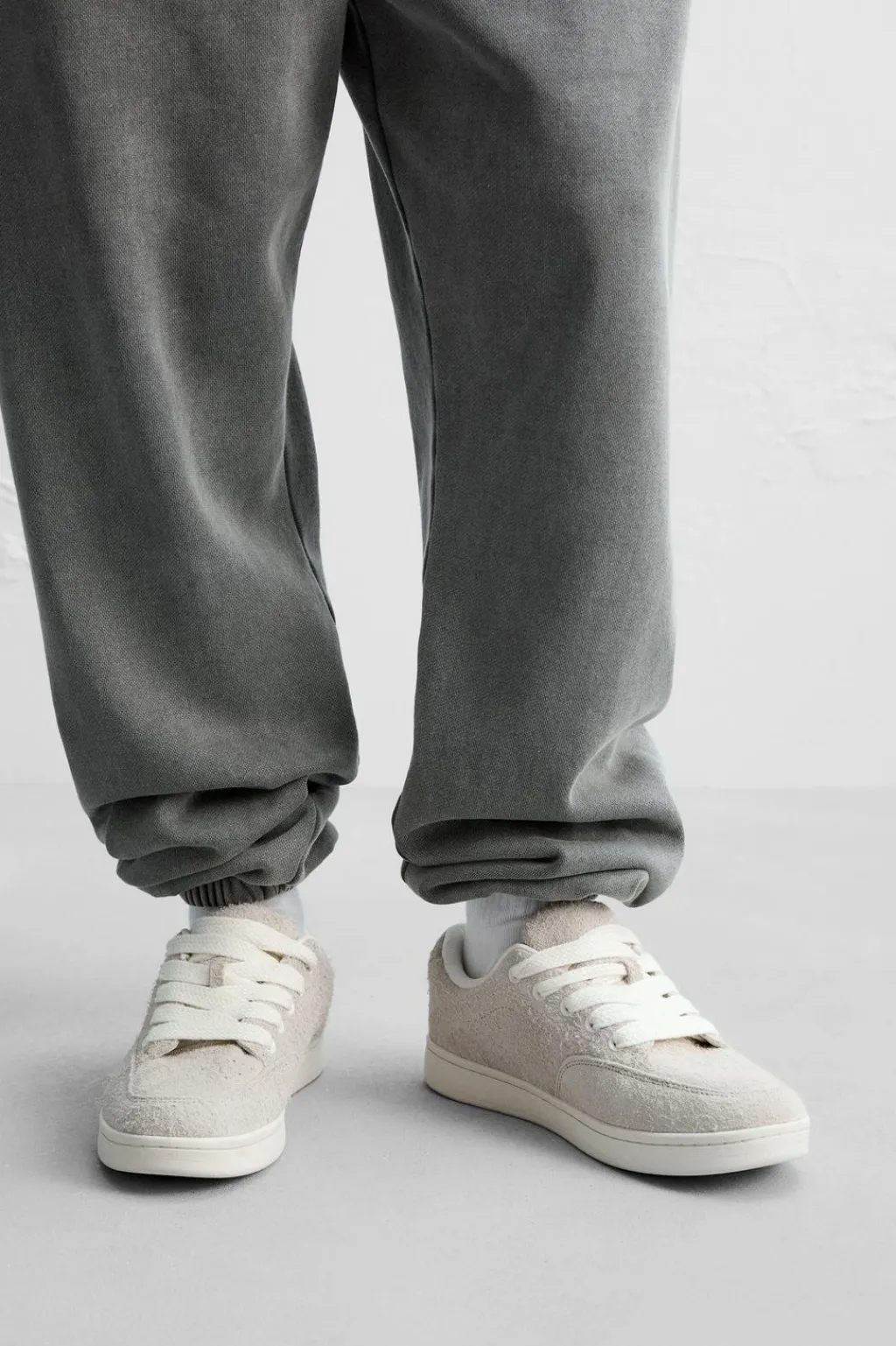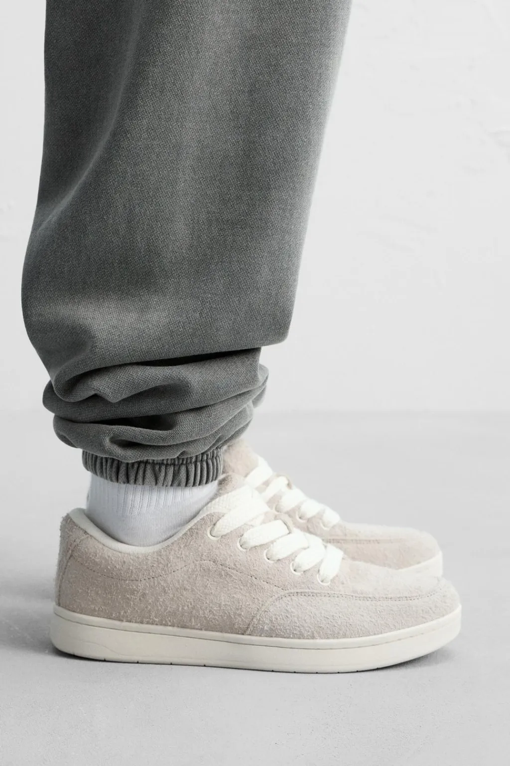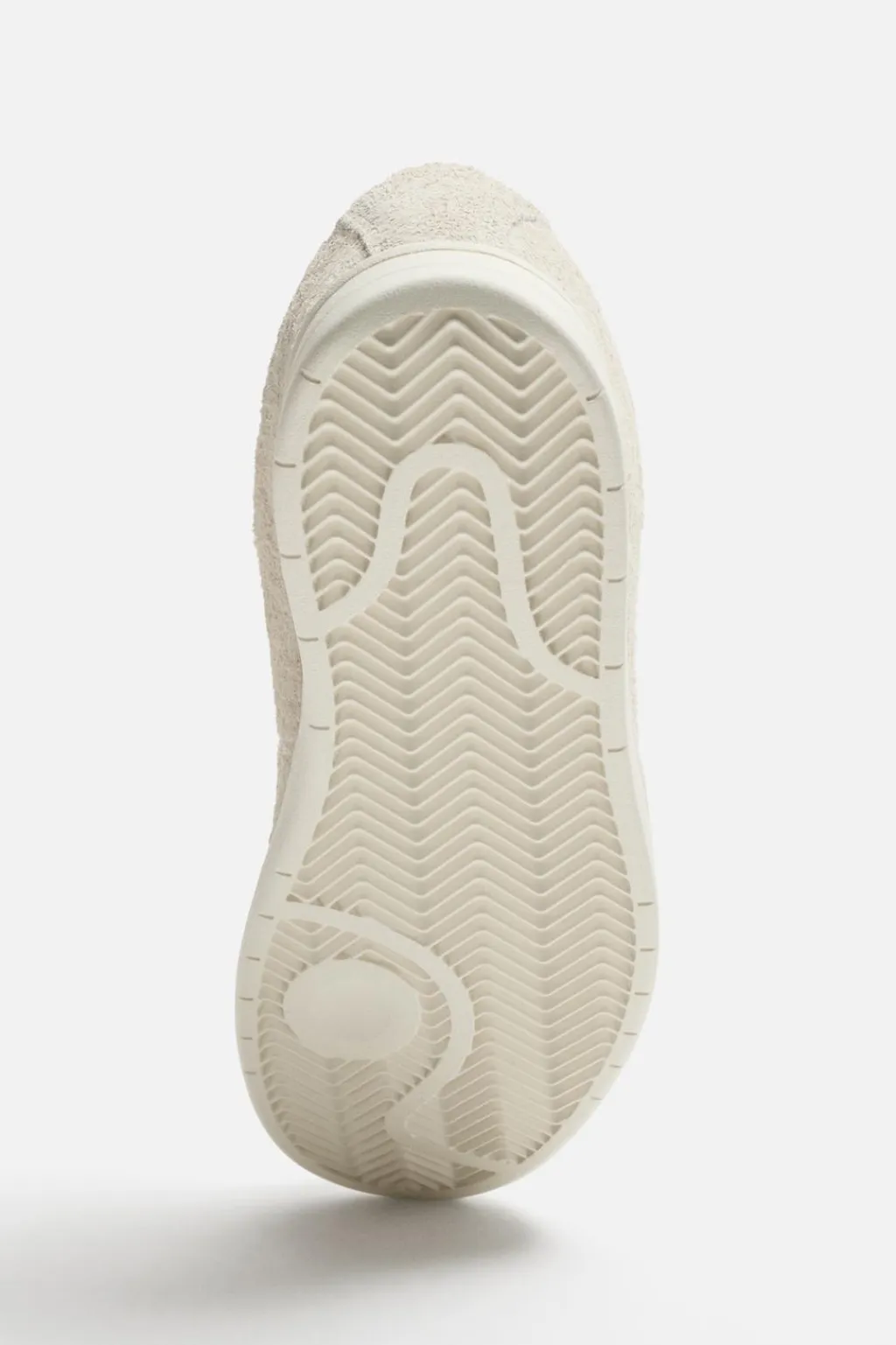 Zapatilla deportiva tipo skate. Parte superior fabricada en piel con acabado serraje. Cordonera con 5 pasados. Detalle de maxi cordones.