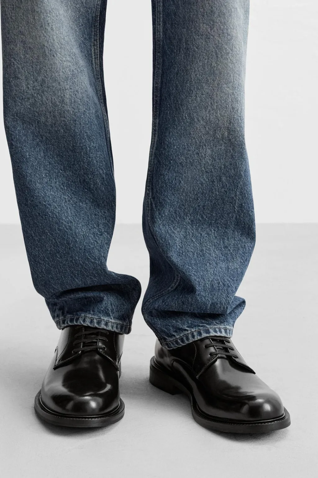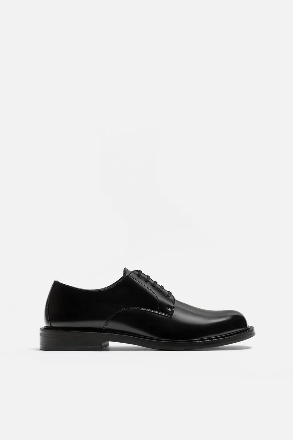 Zapato con cordones fabricado en piel con acabado brillo. Cordonera con cinco pasados. Horma redonda. Forro interior y plantilla en piel.
