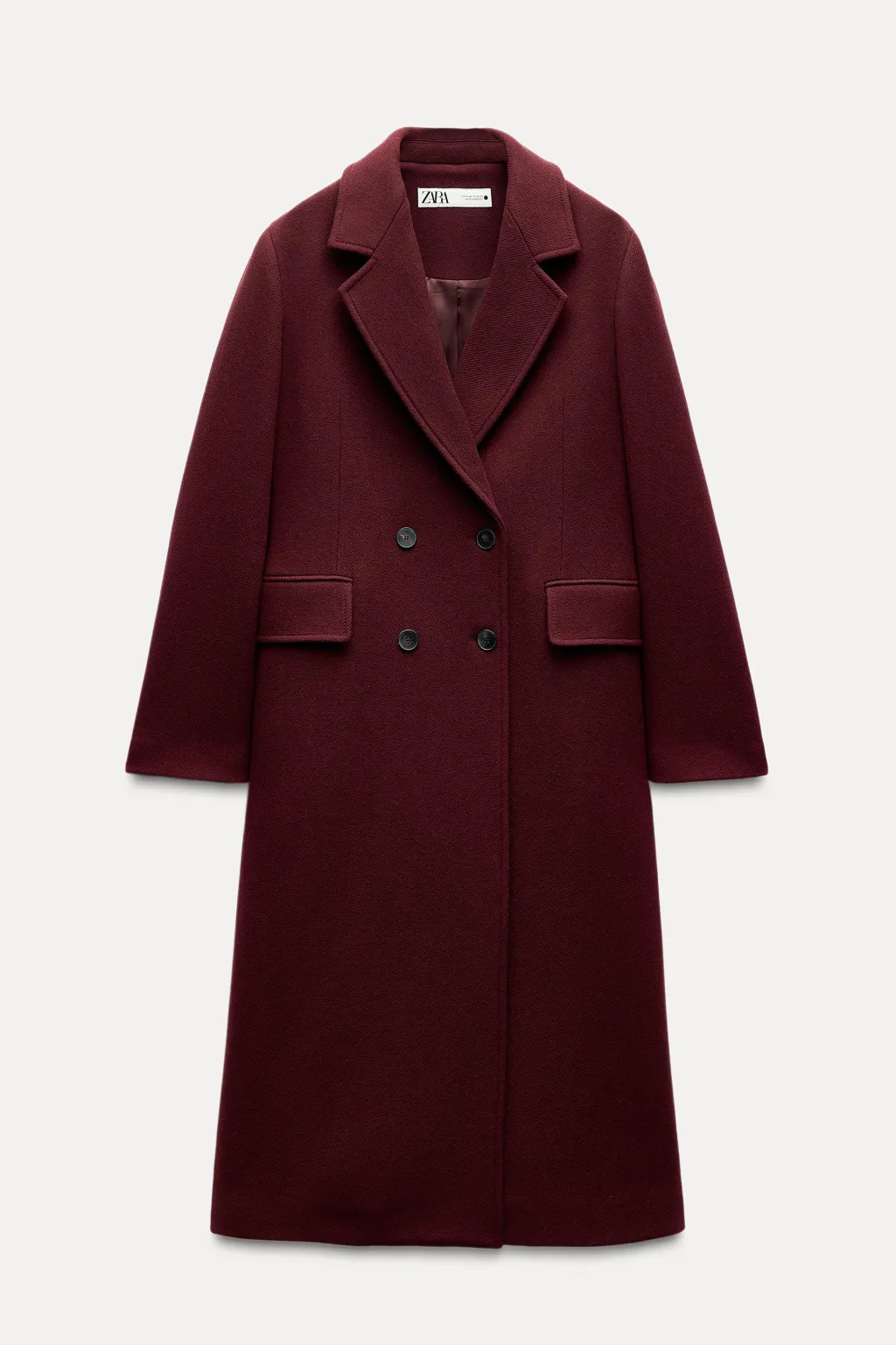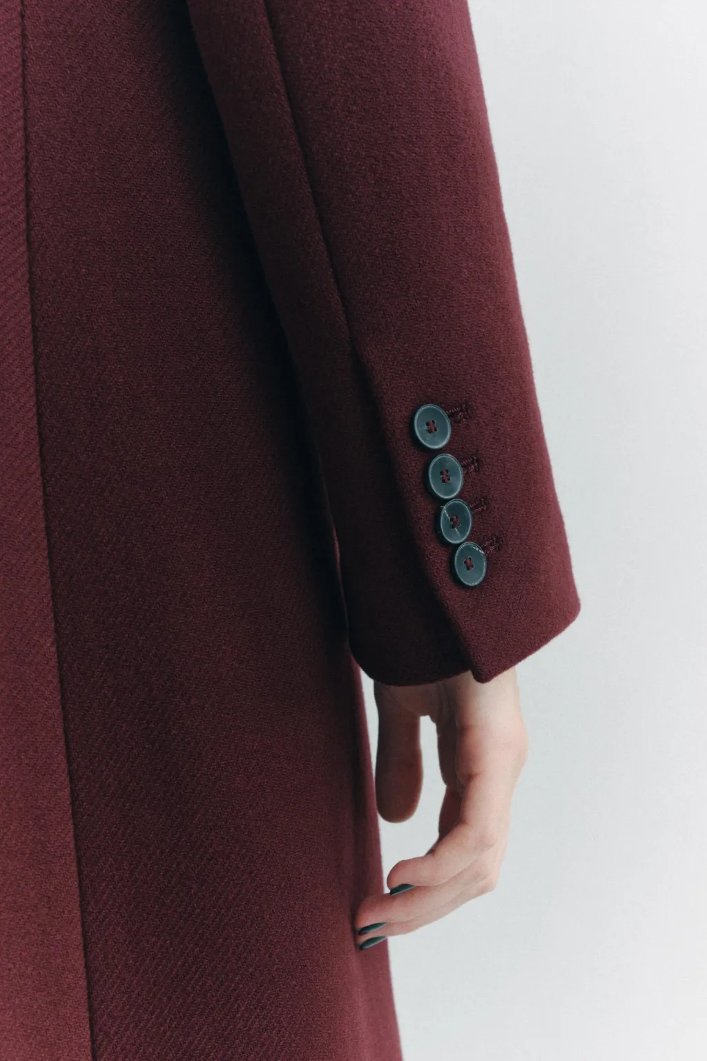 Abrigo confeccionado en hilatura con mezcla de lana Manteco. Cuello solapa de muescas y manga larga acabada en abertura y botones. Bolsillos con solapa en delantero. Forro interior a tono. Cierre frontal cruzado con botones.
