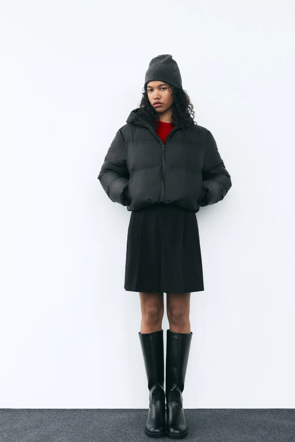 Anorak corto acolchado water repellent. Cuello subido con capucha ajustable con cordones elásticos y stoppers. Manga larga con puño interior tipo mitones. Bolsillos laterales con cremallera oculta en costura. Bajo ajustable con cordones elásticos y stoppers. Cierre frontal con cremallera termosellada.