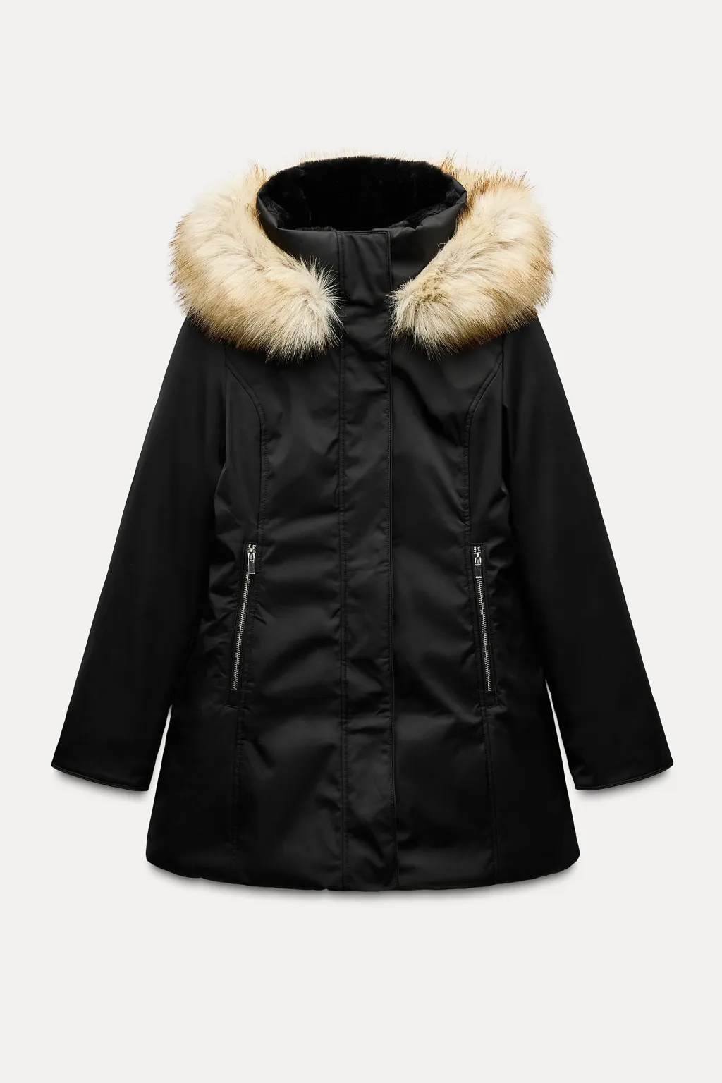 Anorak resistente al agua y al viento con aislamiento térmico para climas fríos. Cuello subido con capucha desmontable efecto pelo y cordones elásticos con stoppers. Manga larga acabada con puño interior efecto neopreno. Acolchado interior y tejido efecto pelo. Tirantes elásticos funcionales en interior. Bolsillos delanteros con forro polar y cierre de cremallera. Cintura entallada con elástico interior. Cierre frontal con cremallera y solapa con botones a presión.