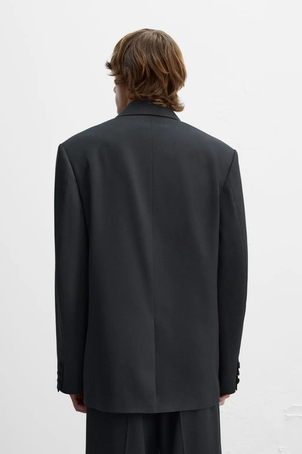 Blazer loose fit confeccionada en tejido con lana. Cuello con solapas de pico y manga larga acabada en puño con botones. Bolsillos de vivo en pecho y de solapa en cadera. Detalle de bolsillo interior. Bajo con abertura en centro espalda. Cierre frontal con botones forrados en el mismo tejido.