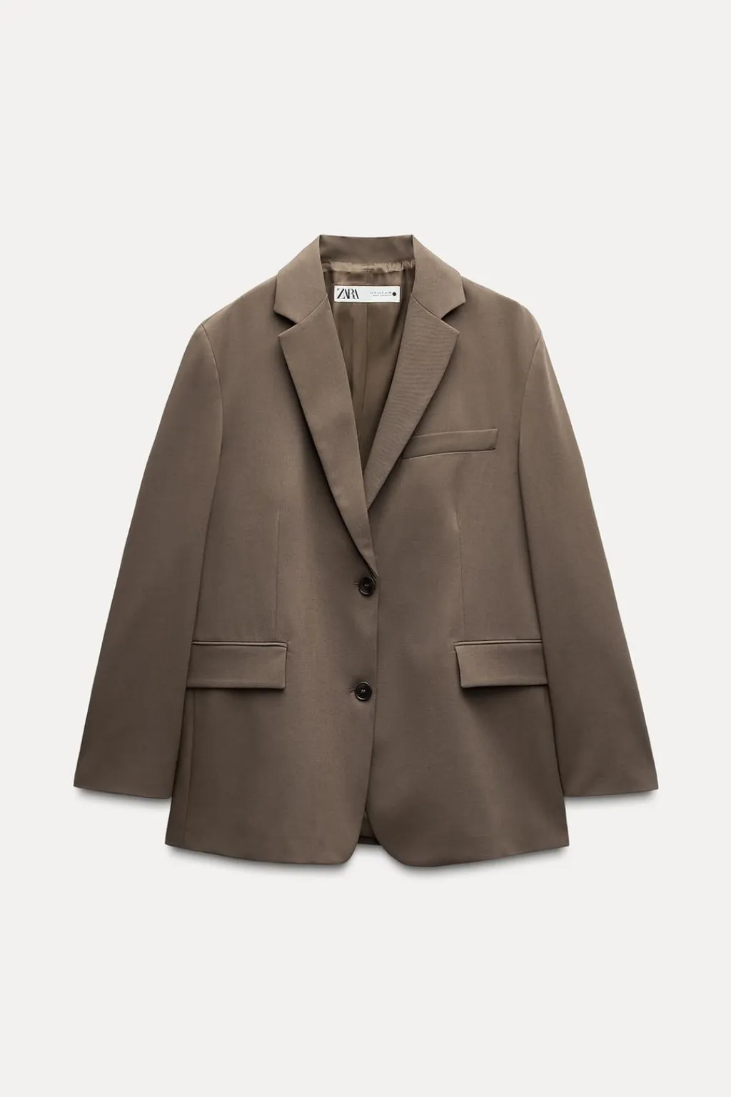 Blazer oversize con cuello solapa de muescas. Manga larga con hombro caído. Bolsillos con solapa en delantero y de vivo en pecho. Forro interior. Cierre frontal con botones.