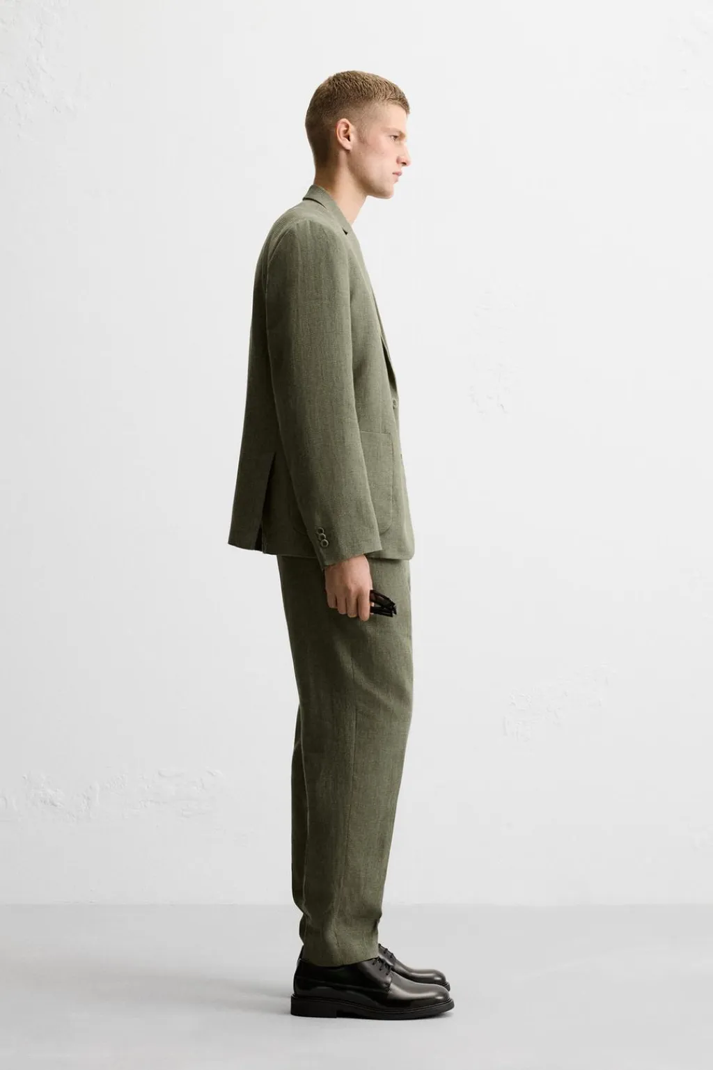 Blazer relaxed fit confeccionada en tejido con mezcla de algodón y lino. Cuello con solapas de muesca y manga larga acabada en puño con botones. Bolsillos de vivo en pecho y de plastrón en cadera. Bajo con aberturas en espalda. Cierre frontal de botonadura.