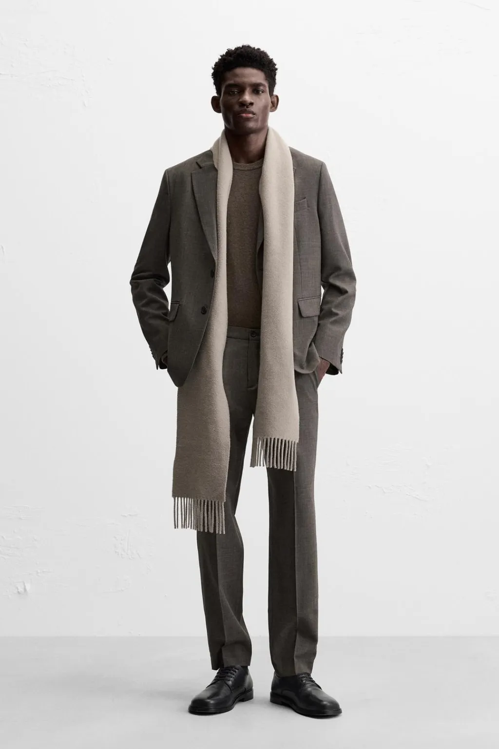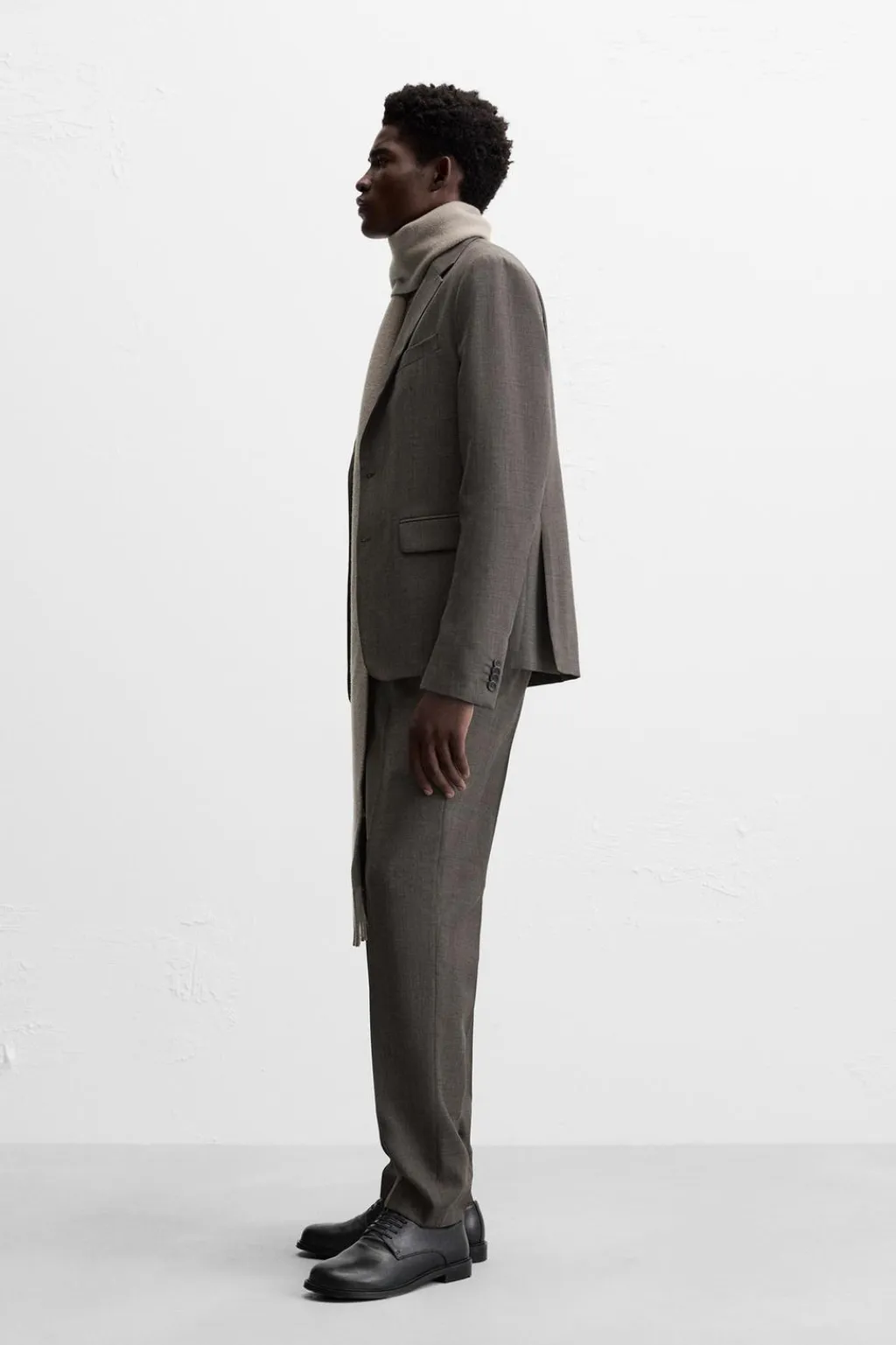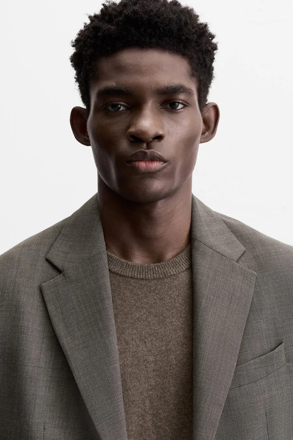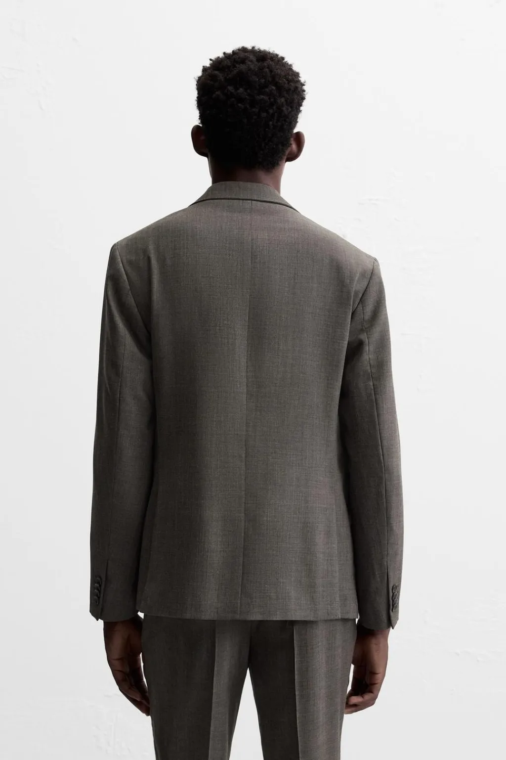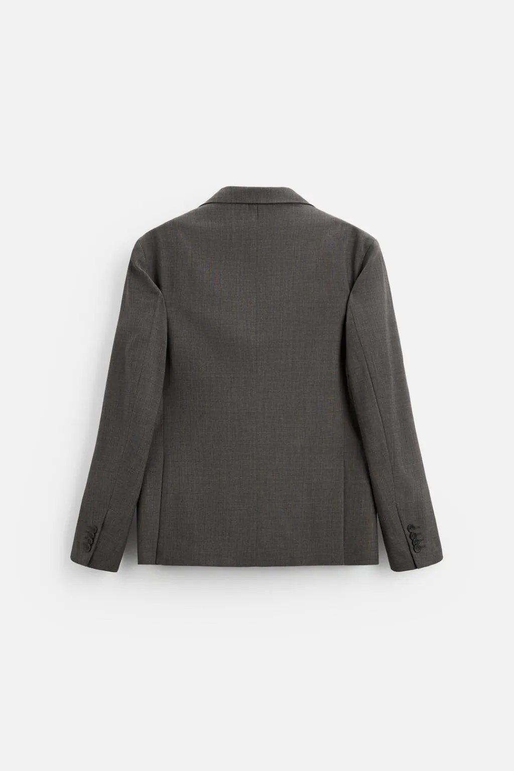 Blazer regular fit confeccionada en tejido con lana. Cuello con solapas de muesca y manga larga acabada en puño con botón. Bolsillo de vivo en pecho y de solapa en cadera. Detalle de bolsillo interior. Bajo con aberturas en espalda. Cierre frontal de botonadura.