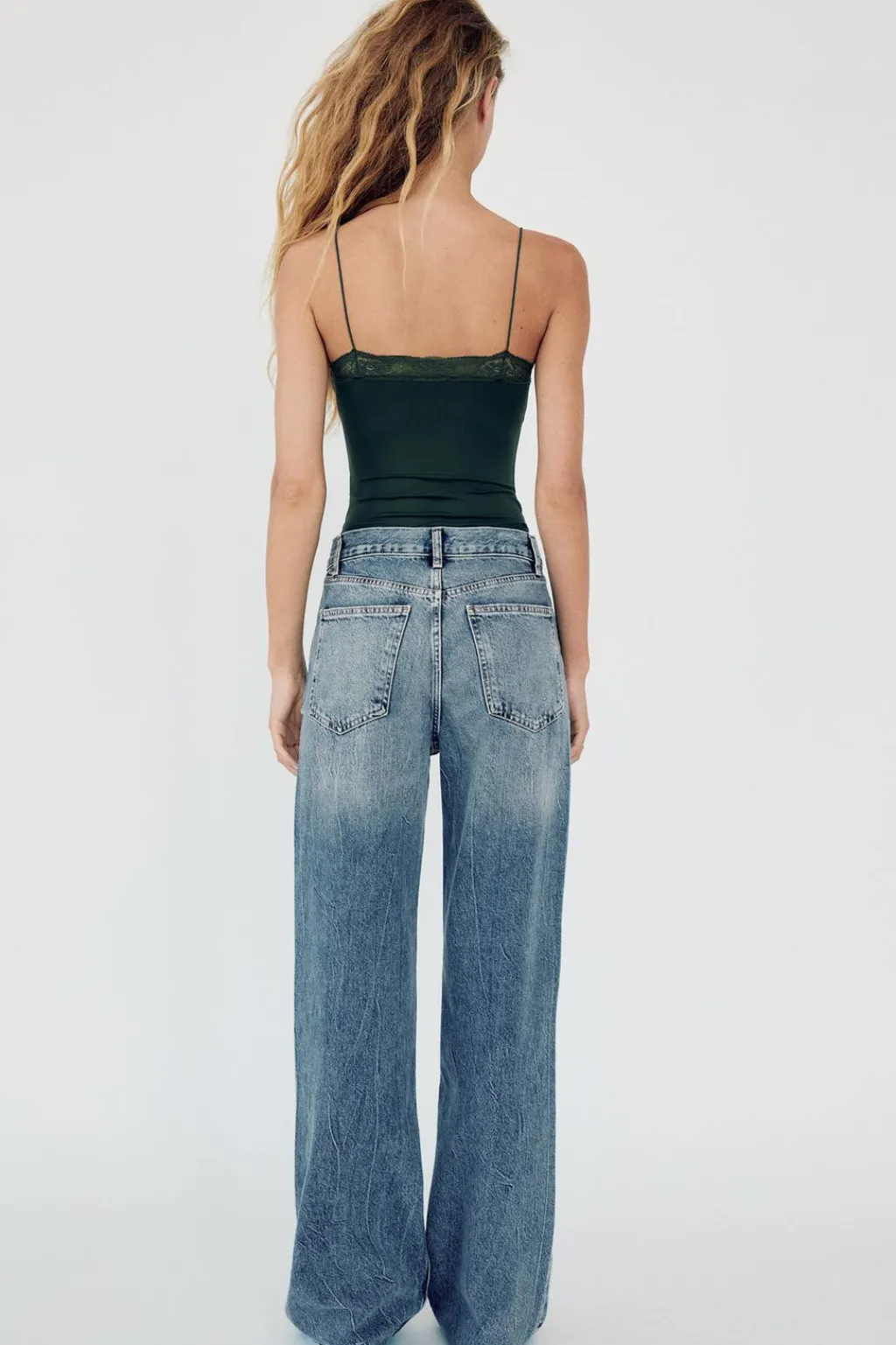 Body entallado de escote pico y tirantes finos. Detalle de encaje combinado a tono. Cierre en bajo con botones a presión.