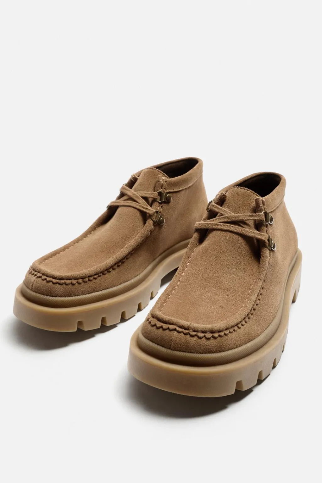 Botín de caña baja. Parte superior fabricada en piel con acabado serraje. Cordonera con dos pasados. Piso con volumen y suela track.